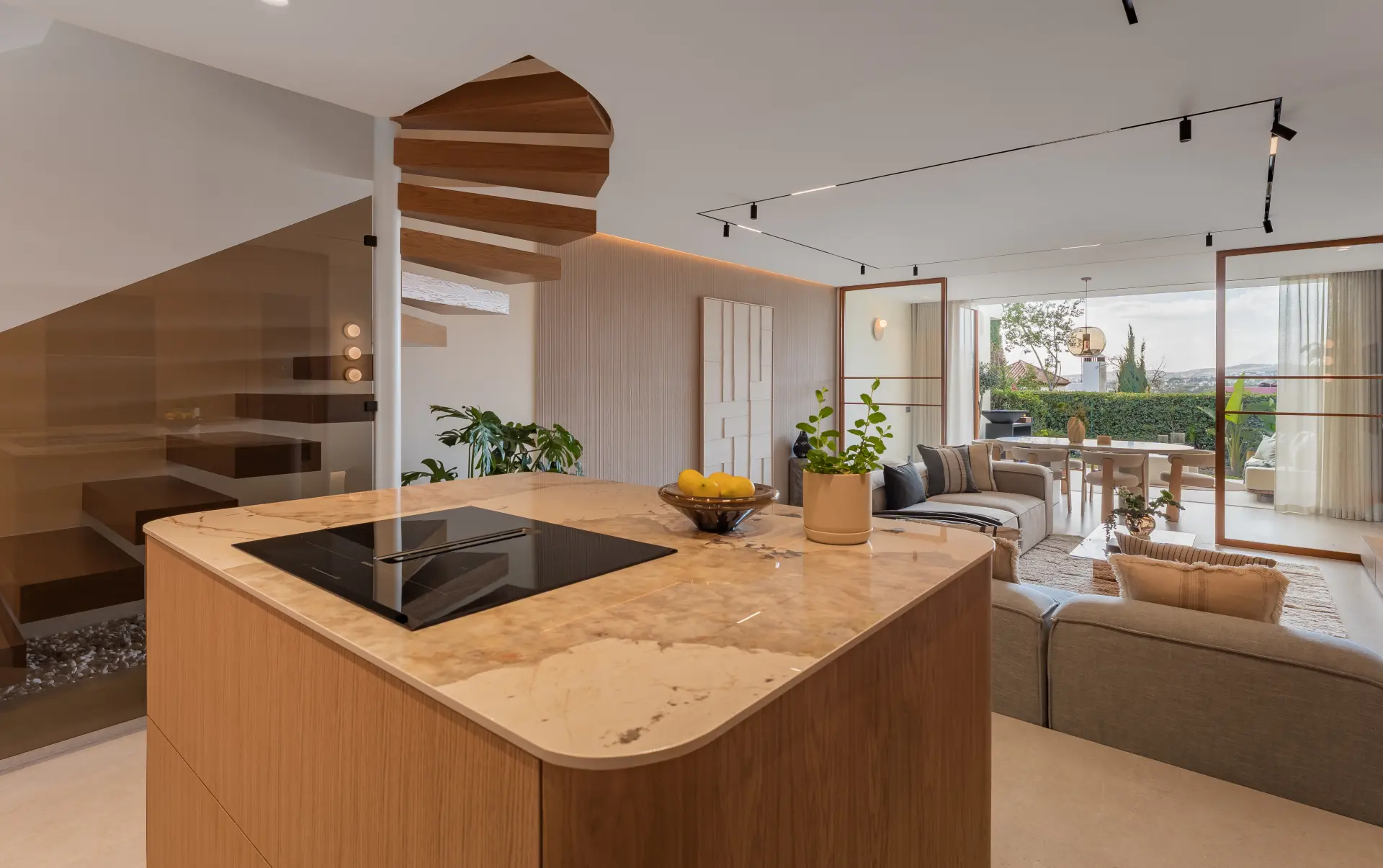Casa Tulu is a thoughtfully designed four-bedroom townhouse located within a peaceful and verdant urbanisation in the heart of Aloha, Marbella. Combining contemporary comfort with timeless elegance, the home blends natural wood finishes, high-quality materials, and an interior layout that creates a warm, inviting atmosphere throughout.