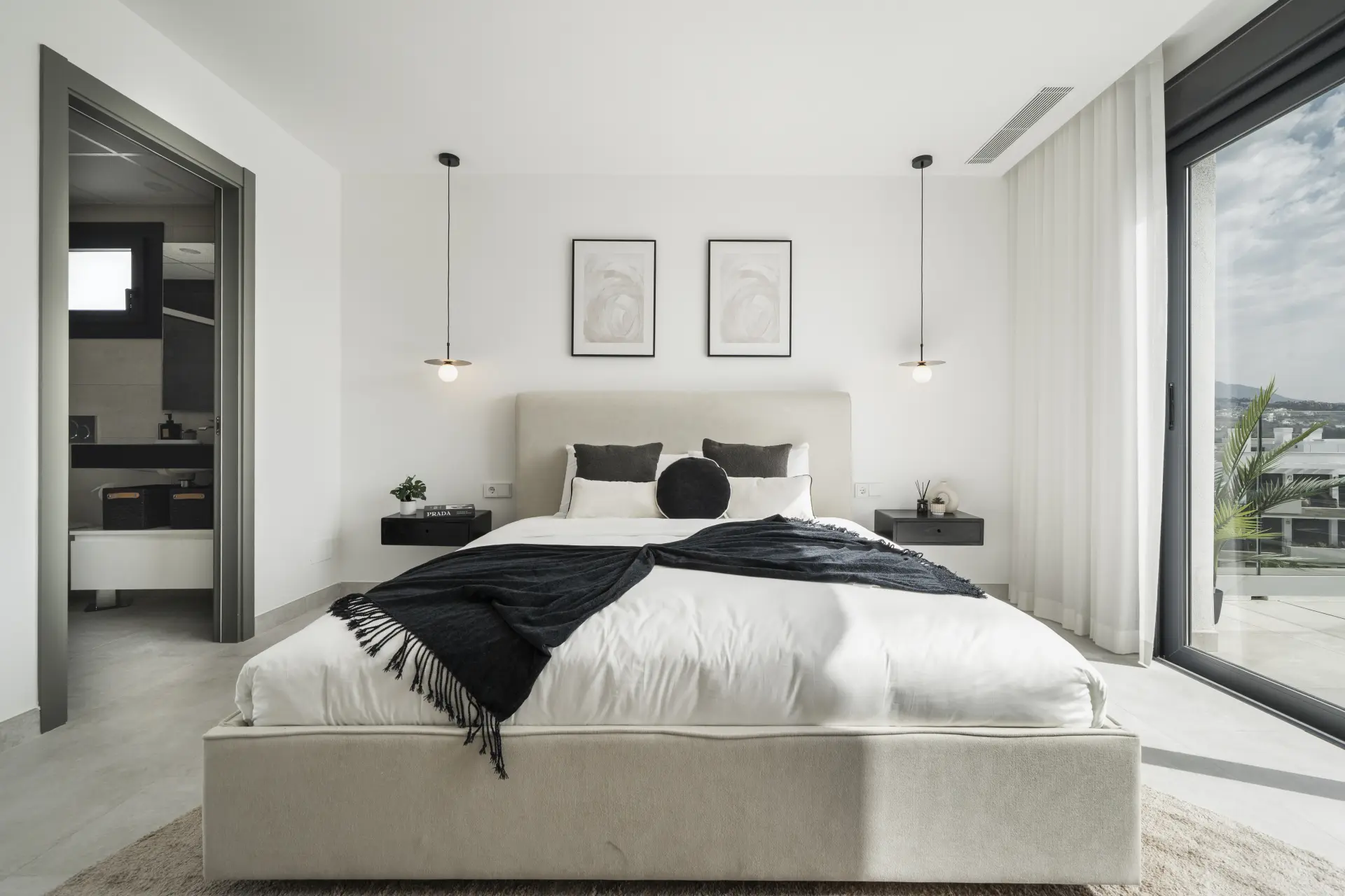 This brand-new duplex penthouse is located within the contemporary gated community of Atalaya Emotion, in Estepona. Designed for modern living, the property combines high-quality finishes with generous outdoor spaces, offering open views across the surrounding landscape and towards La Concha.