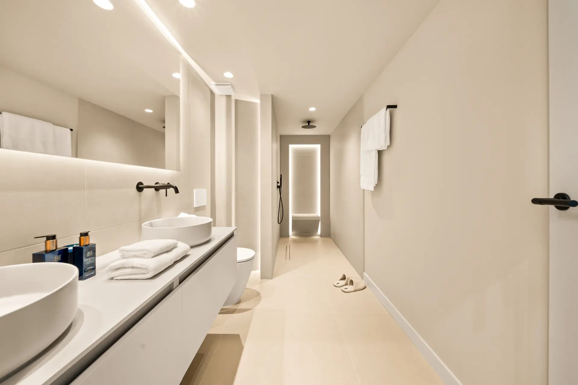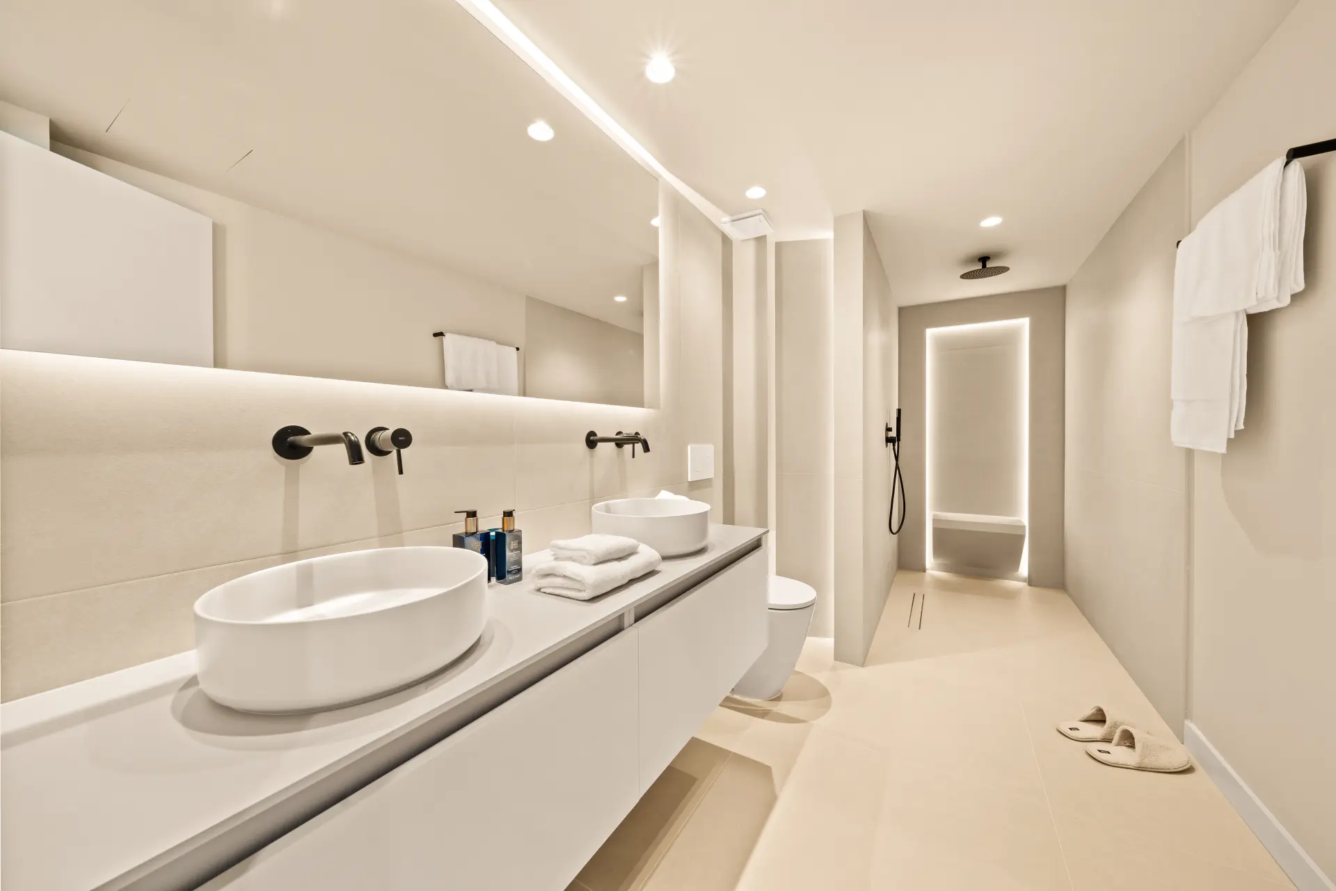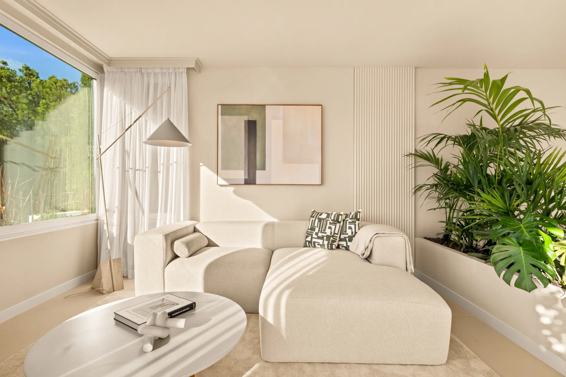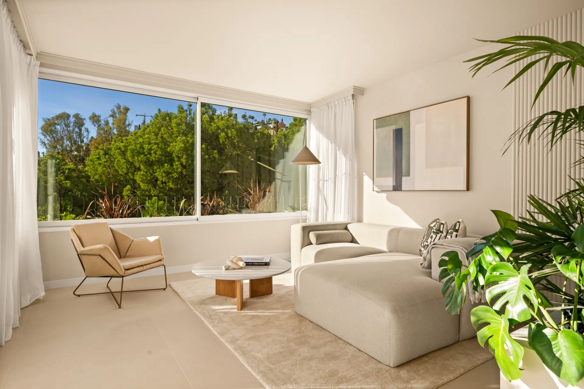 The home features three en-suite bedrooms, a guest toilet, and a sleek, fully fitted kitchen with brand-new appliances. Underfloor heating in all bathrooms and individual Airzone AC units in every room ensure year-round comfort. The south-west facing terrace includes a built-in BBQ, perfect for alfresco dining, while a private parking space adds convenience.