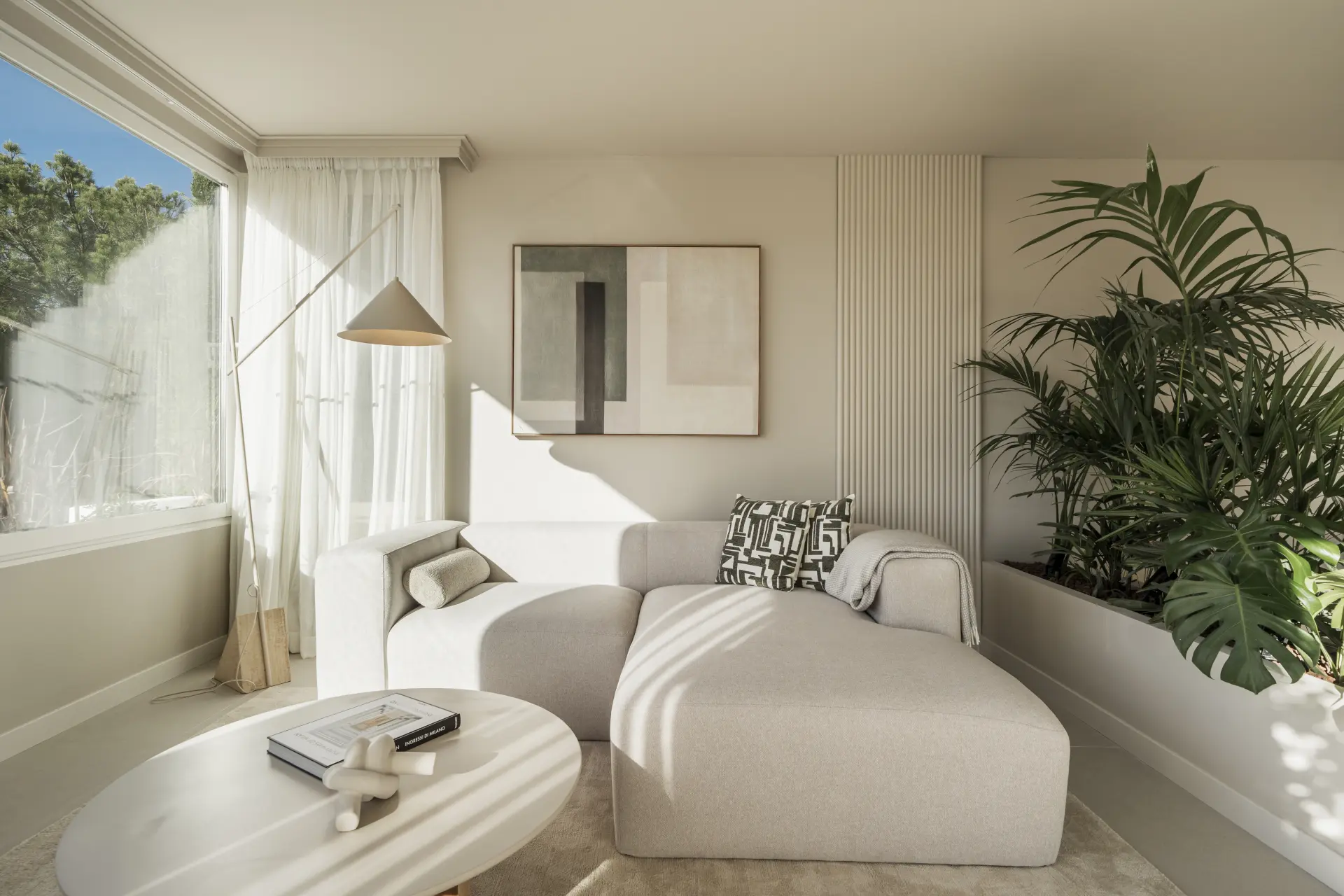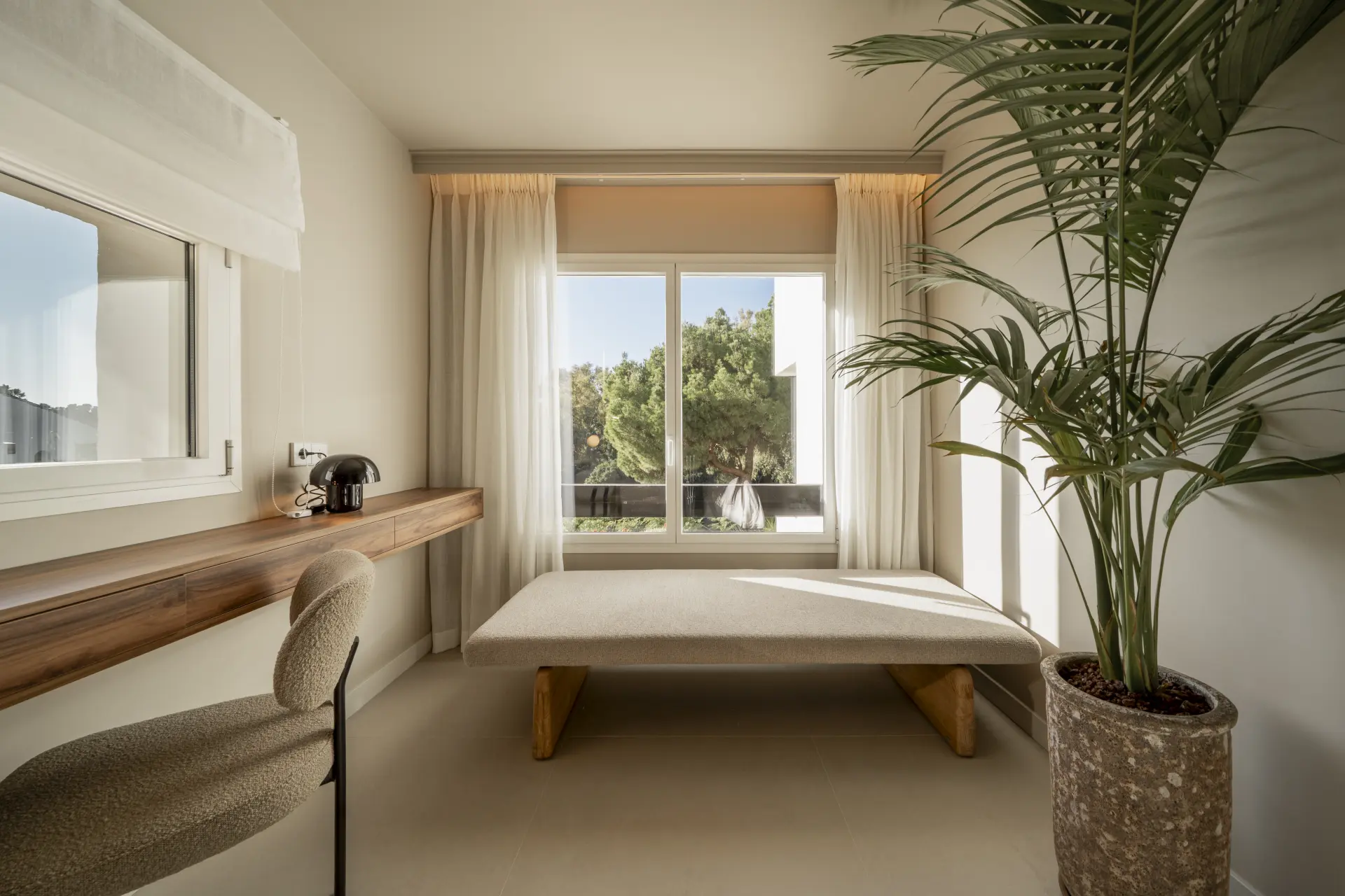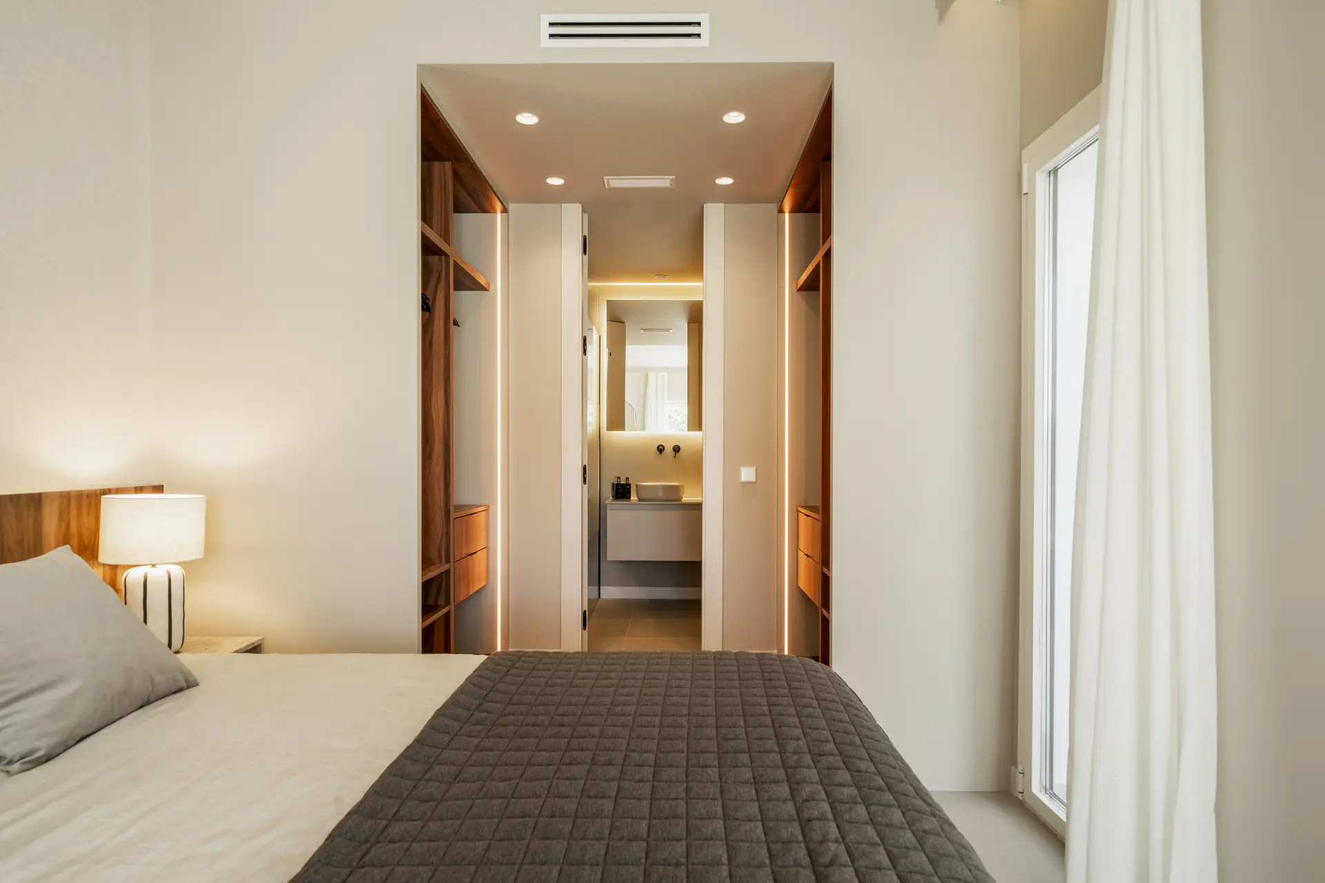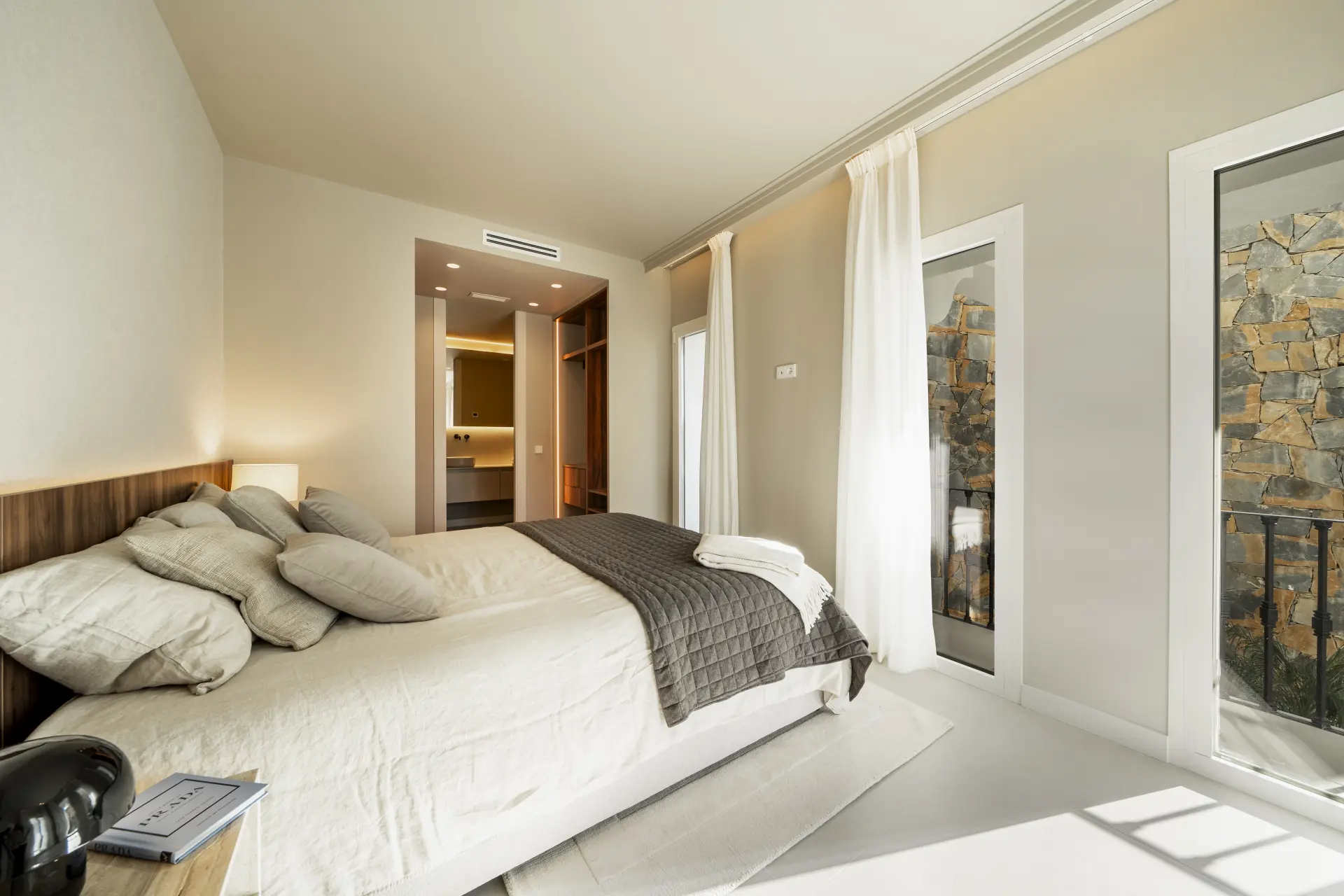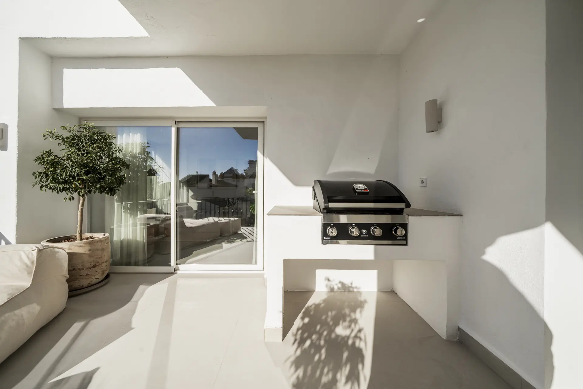 The terrace incorporates a built-in barbecue and benefits from afternoon light, extending the living space outward. Underfloor heating in the bathrooms and individual Airzone climate control in each room ensure year-round comfort.