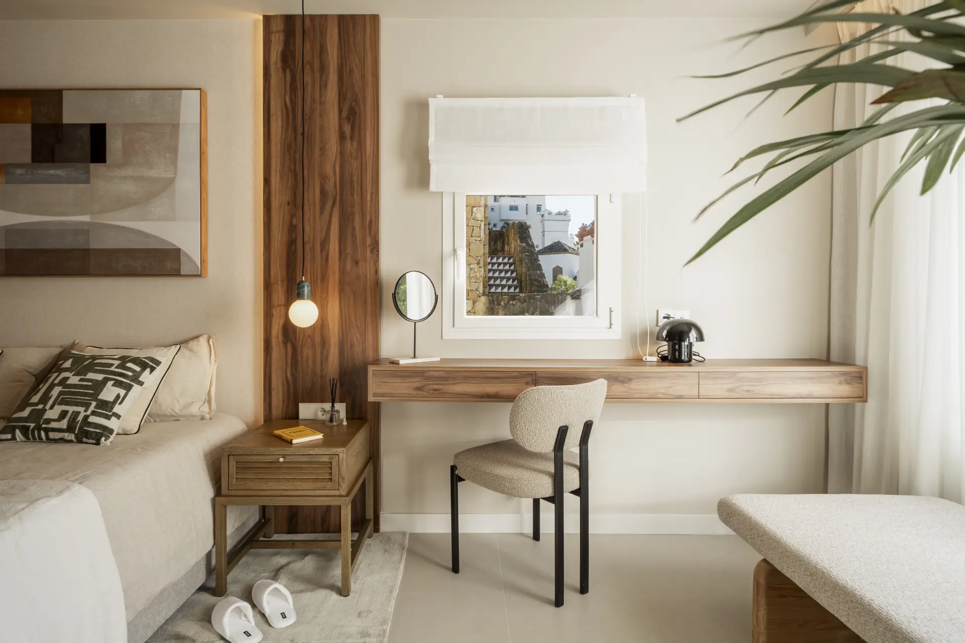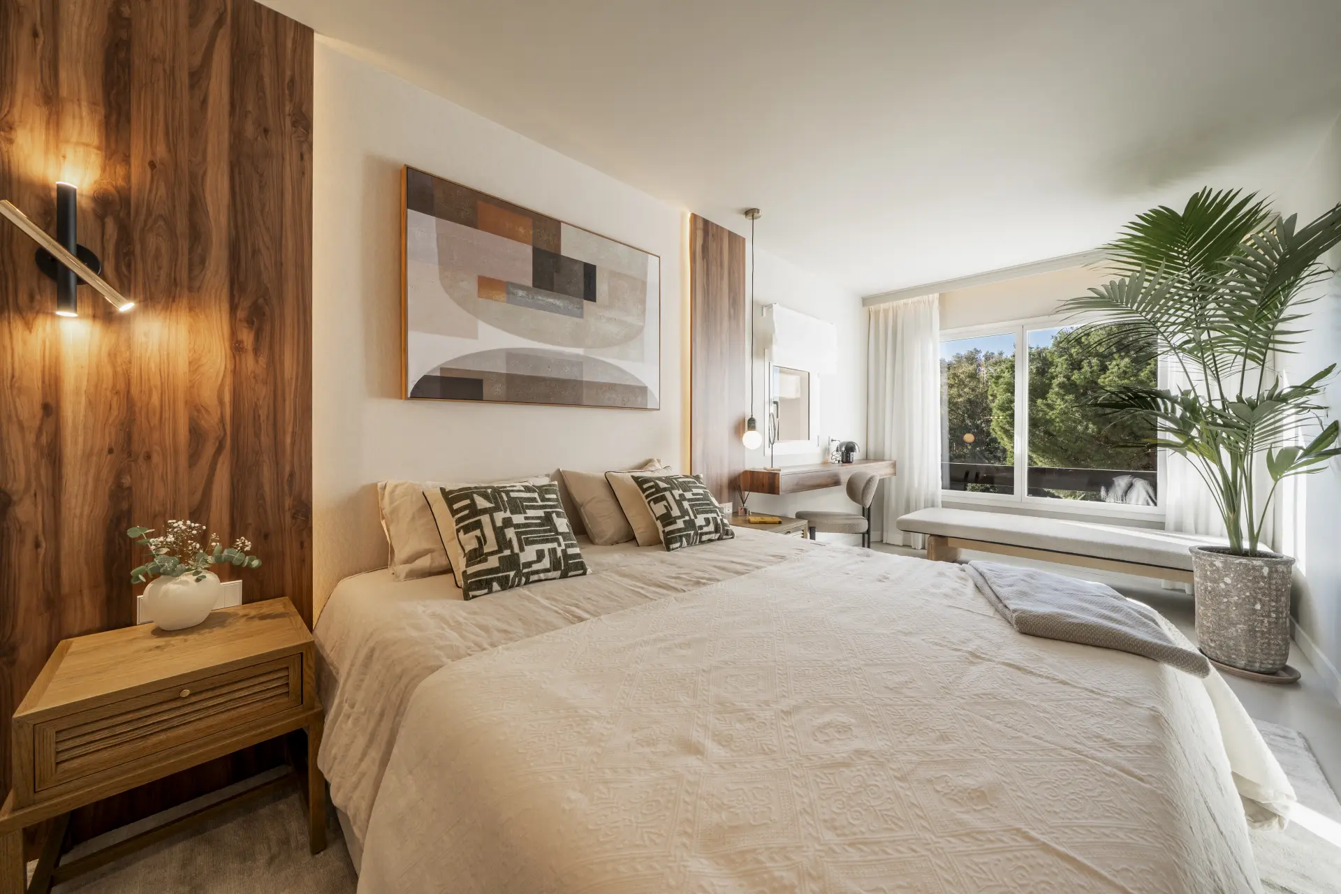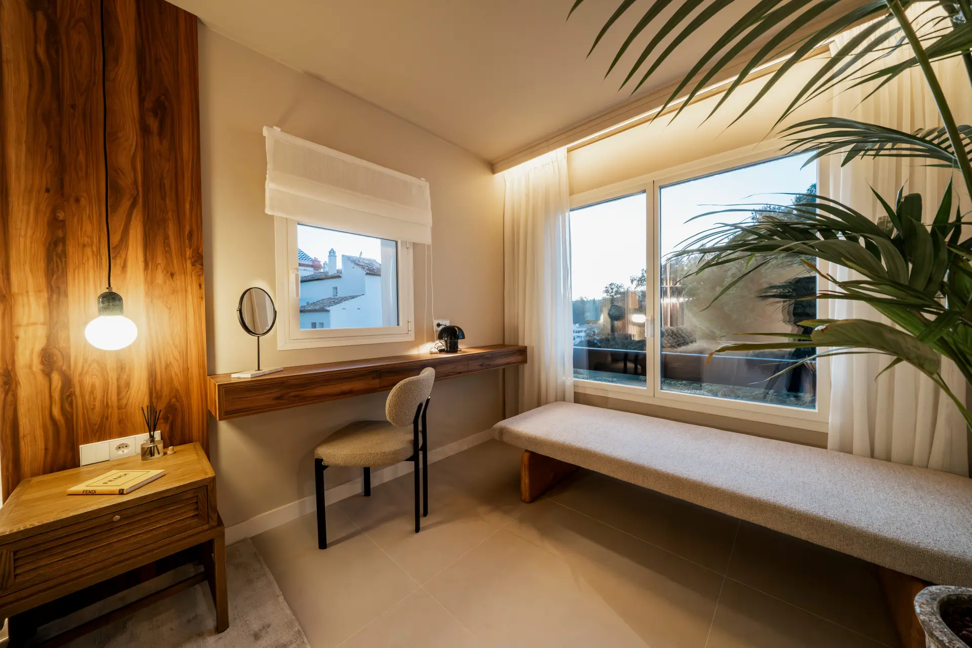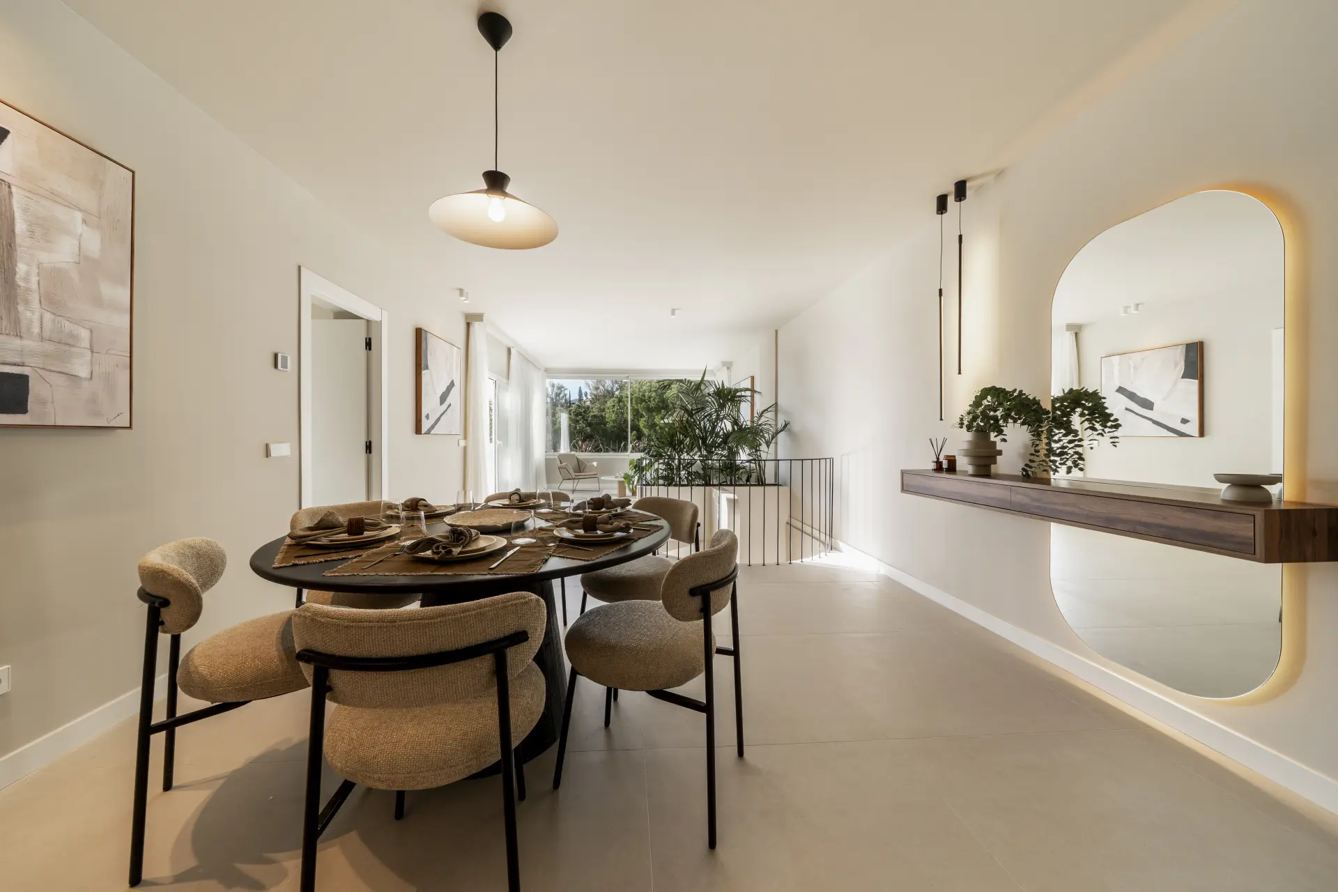 The apartment has been fully upgraded and is presented key-ready. Arranged over two levels, it offers three en-suite bedrooms and a guest toilet, creating a practical distribution for both private use and short-term stays. The interior follows a clean, contemporary approach, with a fully fitted kitchen equipped with new appliances and open living areas that connect directly to a south-west facing terrace.