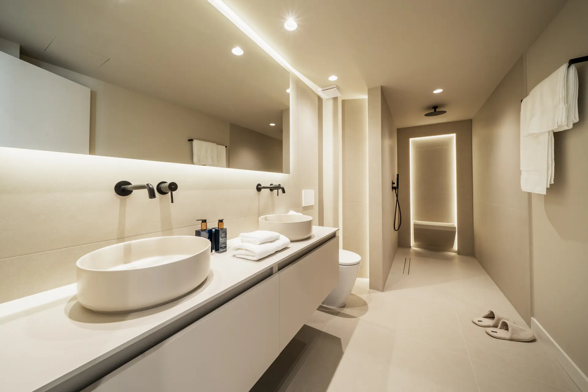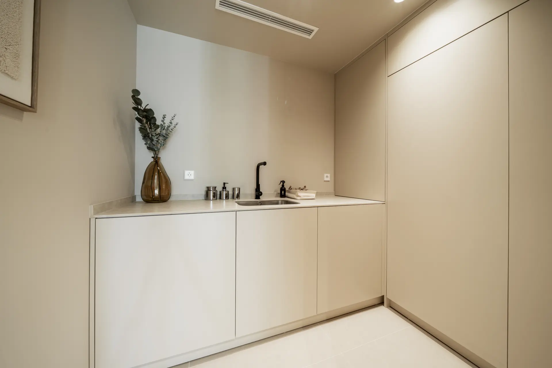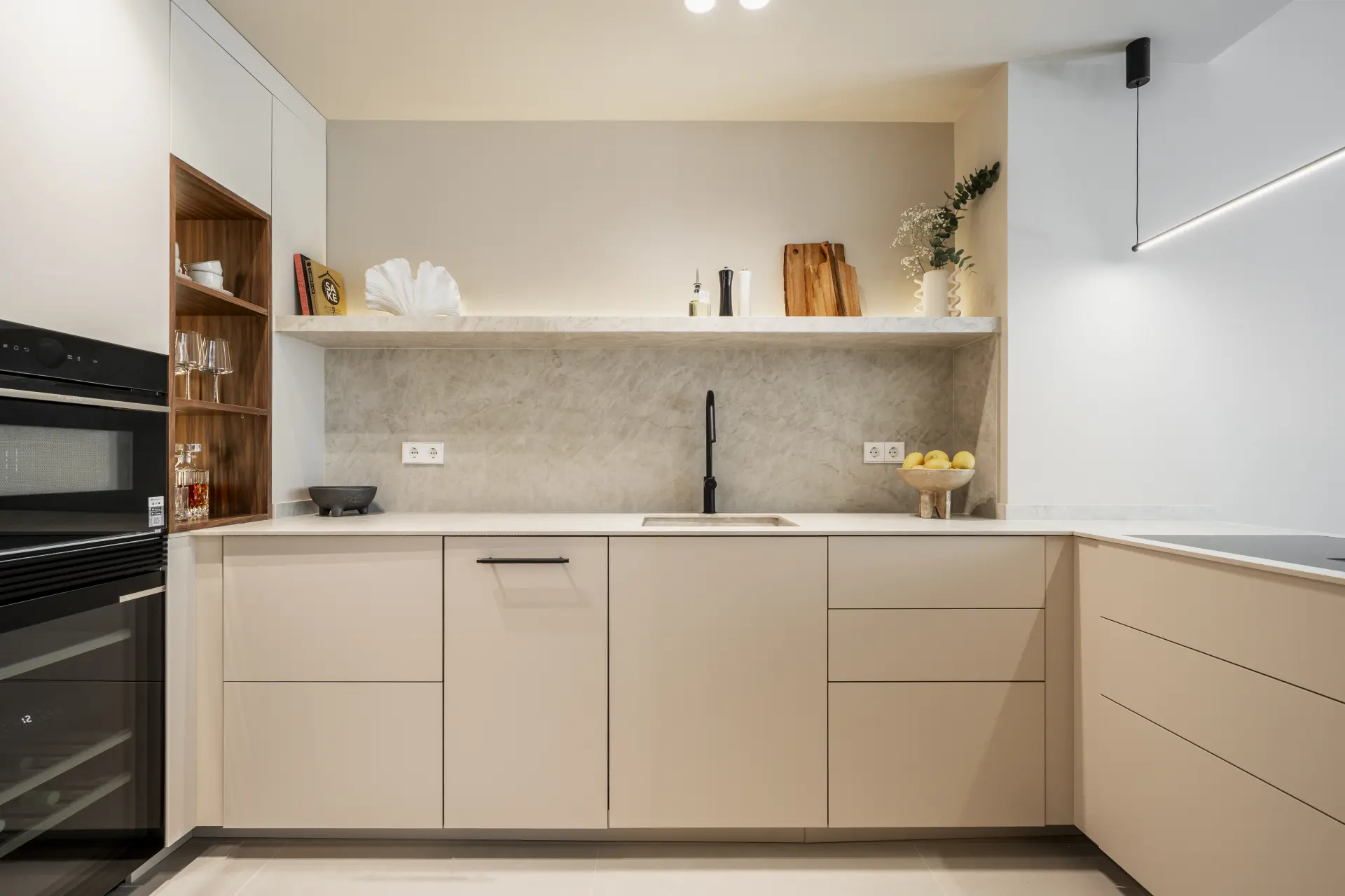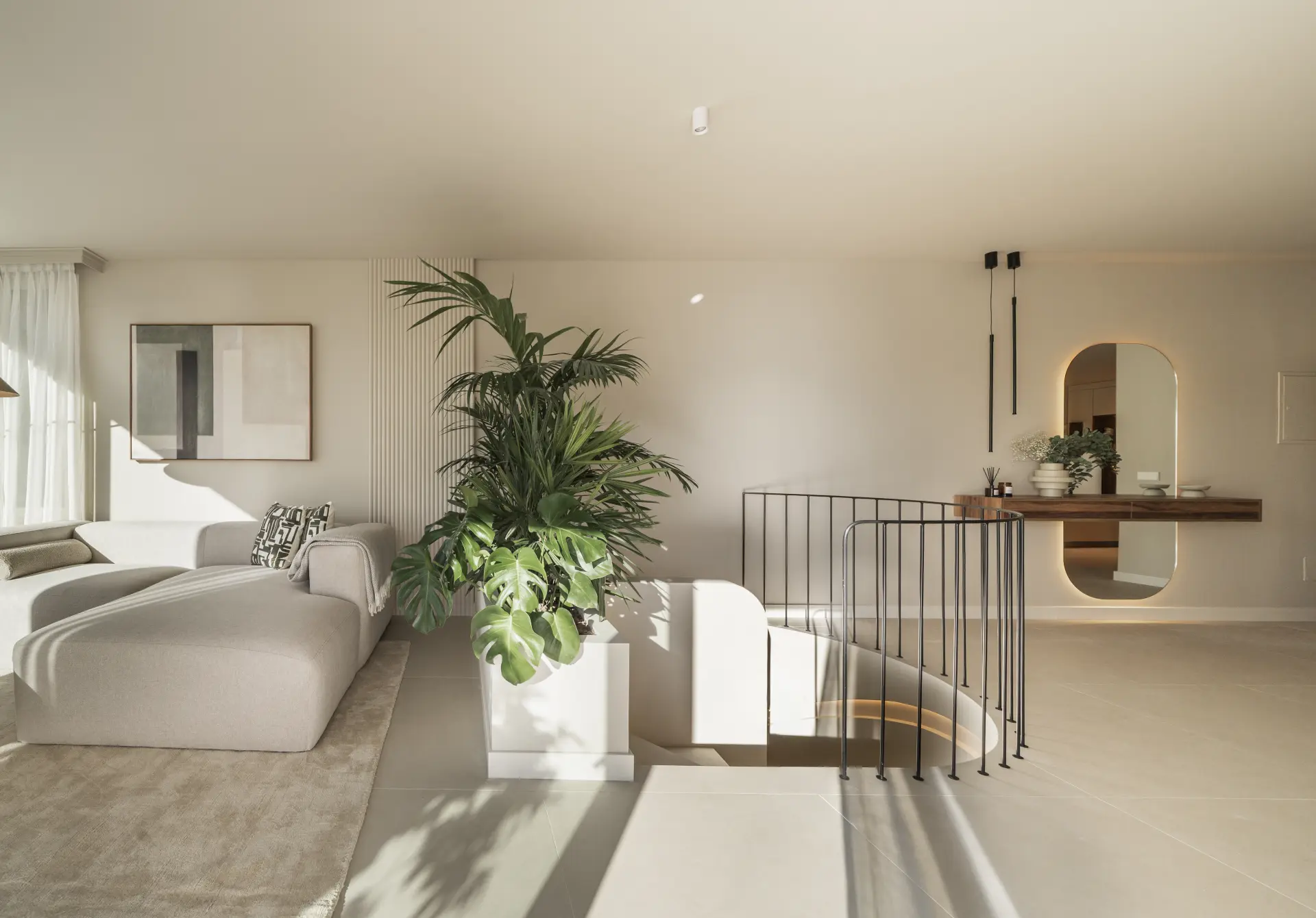 The apartment has been fully upgraded and is presented key-ready. Arranged over two levels, it offers three en-suite bedrooms and a guest toilet, creating a practical distribution for both private use and short-term stays. The interior follows a clean, contemporary approach, with a fully fitted kitchen equipped with new appliances and open living areas that connect directly to a south-west facing terrace.