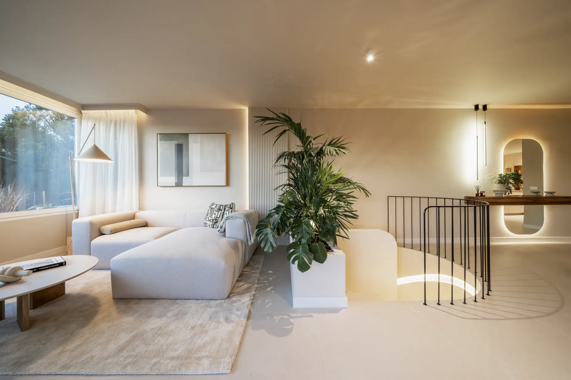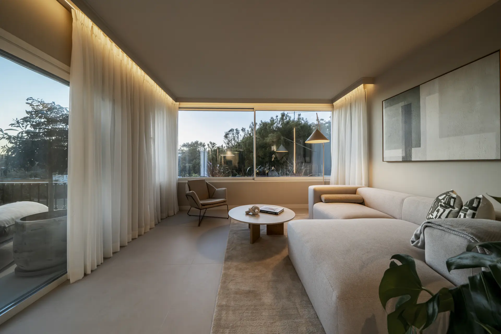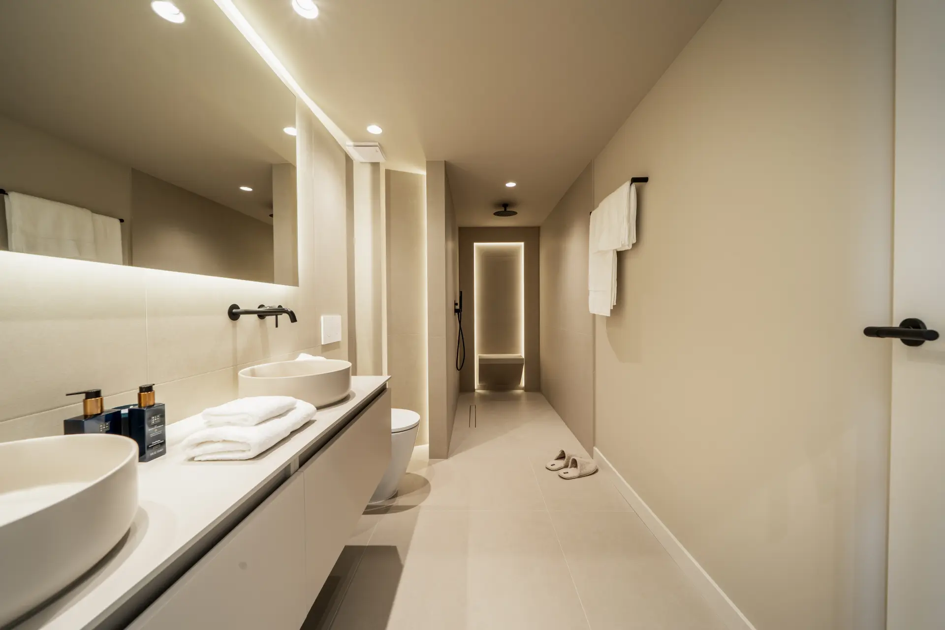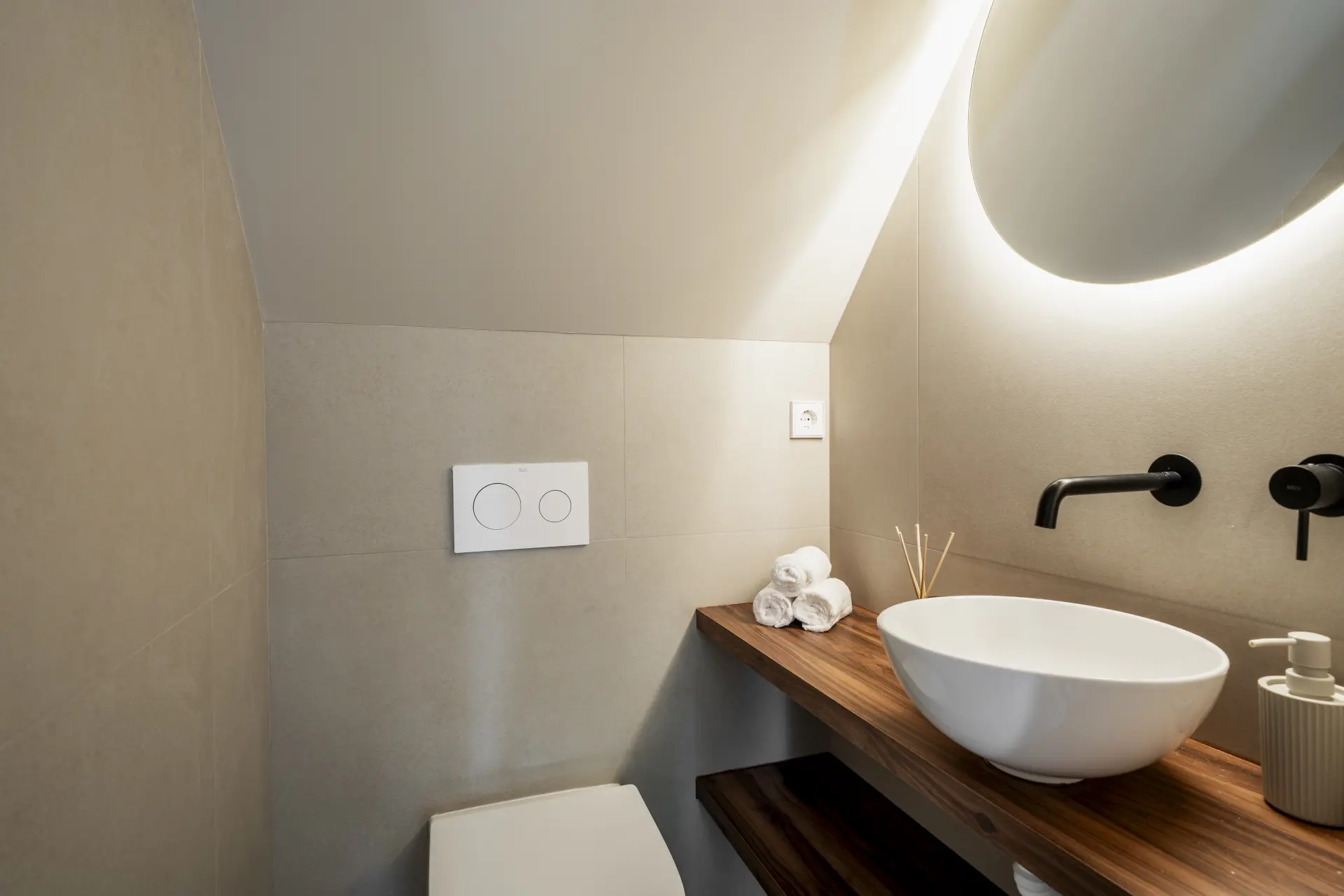 The apartment has been fully upgraded and is presented key-ready. Arranged over two levels, it offers three en-suite bedrooms and a guest toilet, creating a practical distribution for both private use and short-term stays. The interior follows a clean, contemporary approach, with a fully fitted kitchen equipped with new appliances and open living areas that connect directly to a south-west facing terrace.