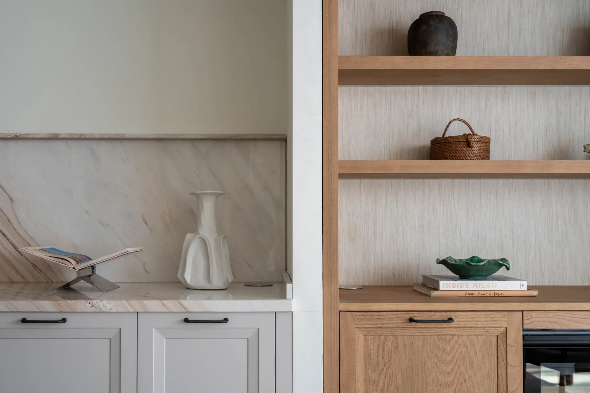 The entrance level welcomes you with abundant natural light and an open-plan layout that integrates the living room, dining area, and social kitchen. Expansive sliding doors open onto a private garden designed for outdoor living, featuring a heated pool, summer kitchen, and stylish dining and lounge areas—your own secluded retreat by the sea. This level also includes a guest suite with en-suite bathroom and a guest toilet.