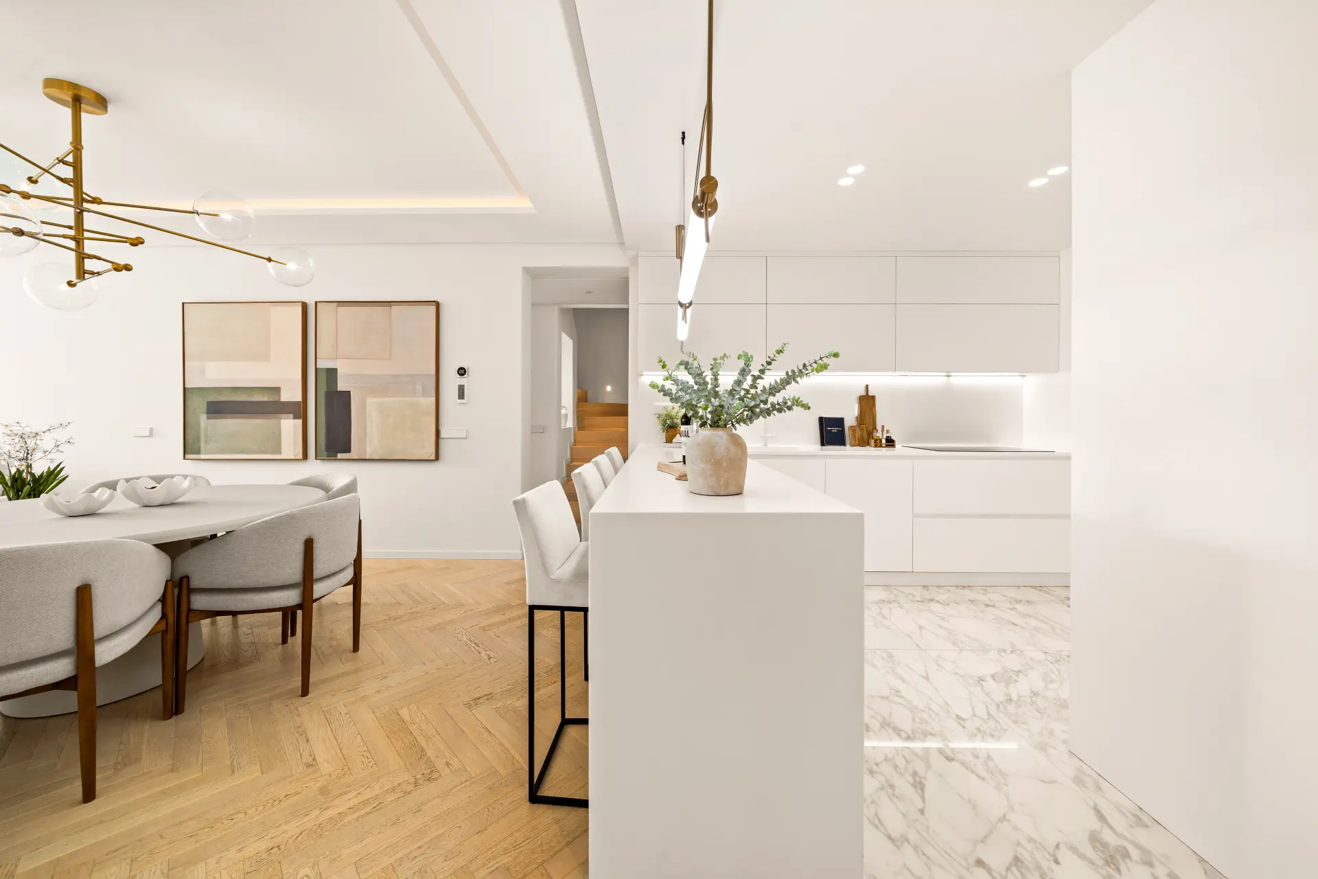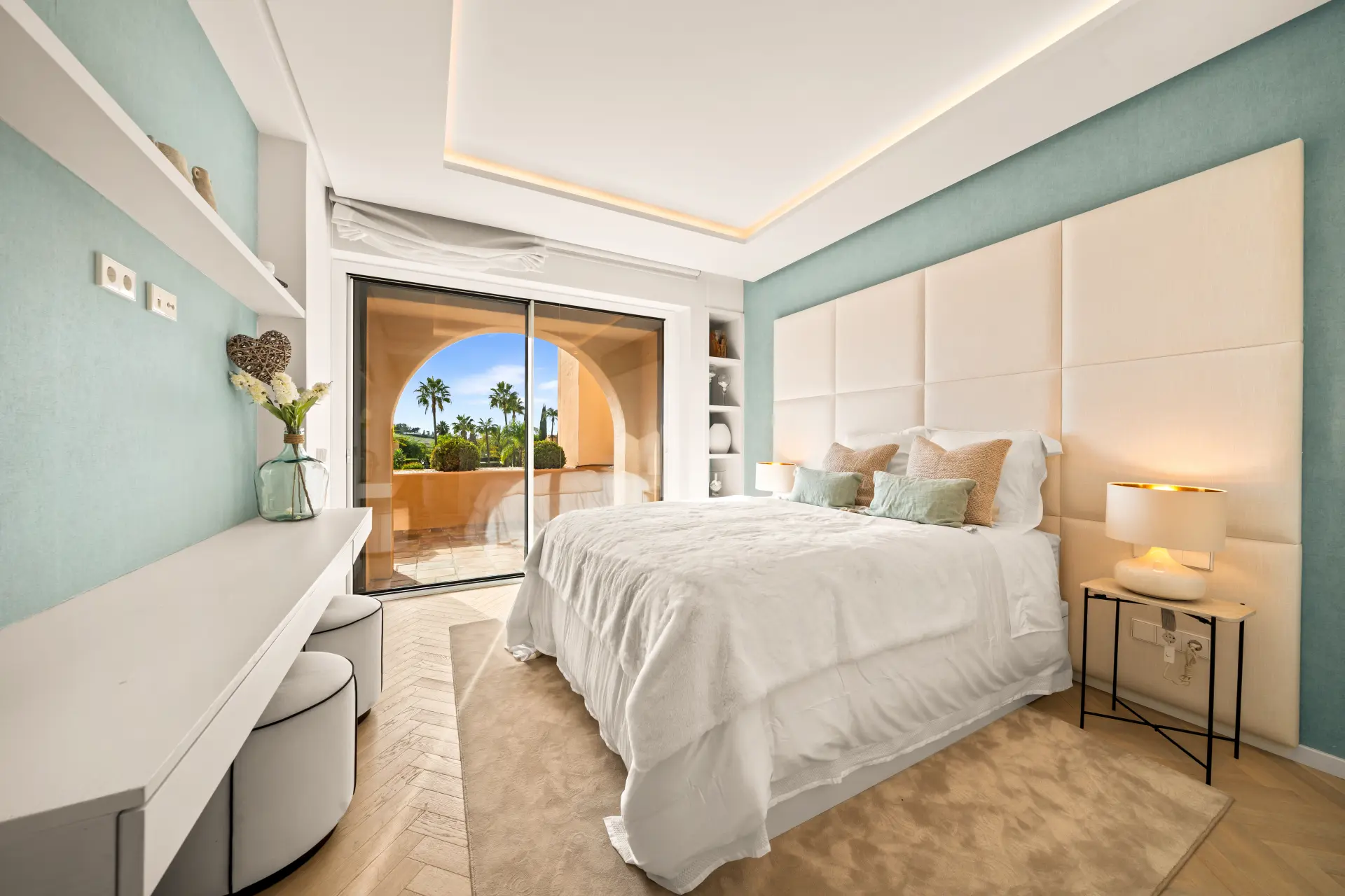 This stunning 3-bedroom duplex penthouse has been fully renovated to the highest standards, combining contemporary elegance with relaxed Mediterranean living. Featuring oak floors throughout and exquisite herringbone detailing, the interiors exude timeless sophistication.