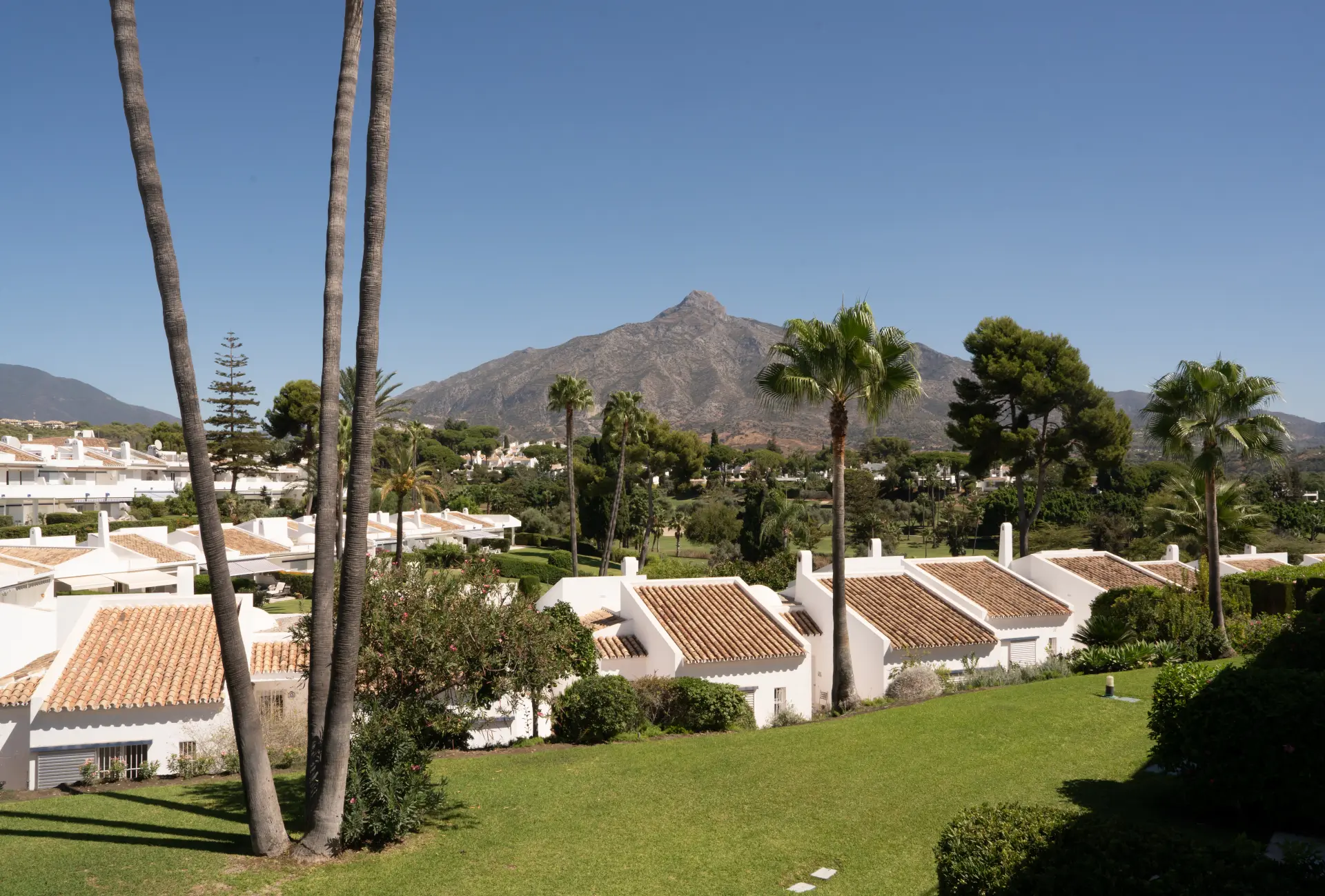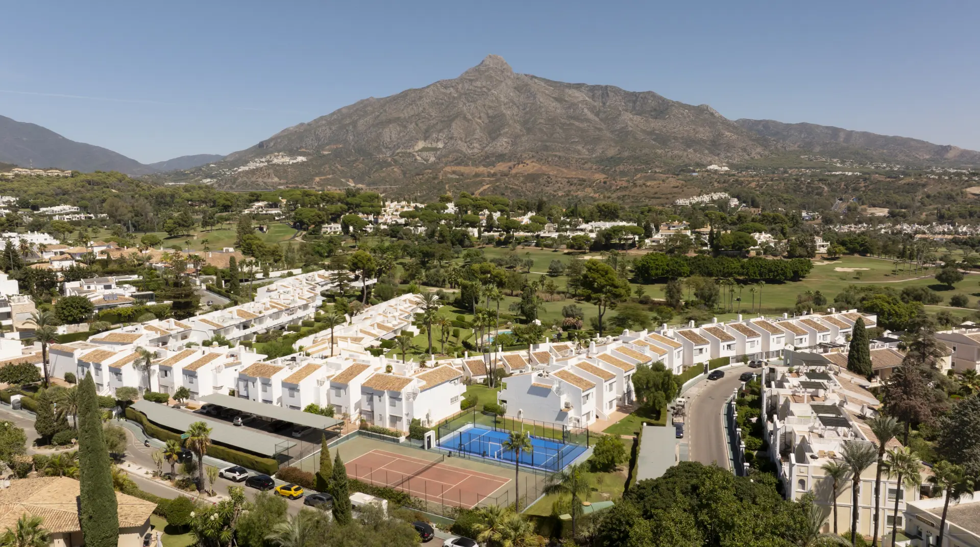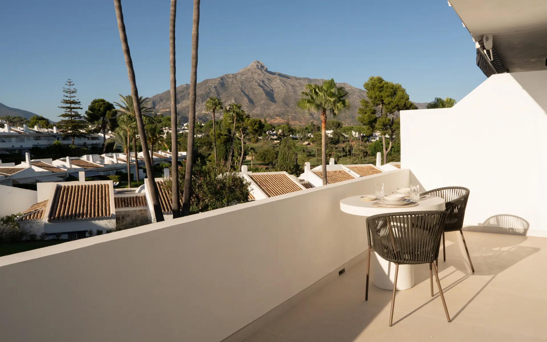 In the heart of Marbella’s Golf Valley, this renovated duplex penthouse combines modern Scandinavian-inspired interiors with the best of Mediterranean living. The home sits within a secure gated community that offers residents access to a gym, spa, swimming pool, and tennis and padel courts, all surrounded by landscaped gardens.