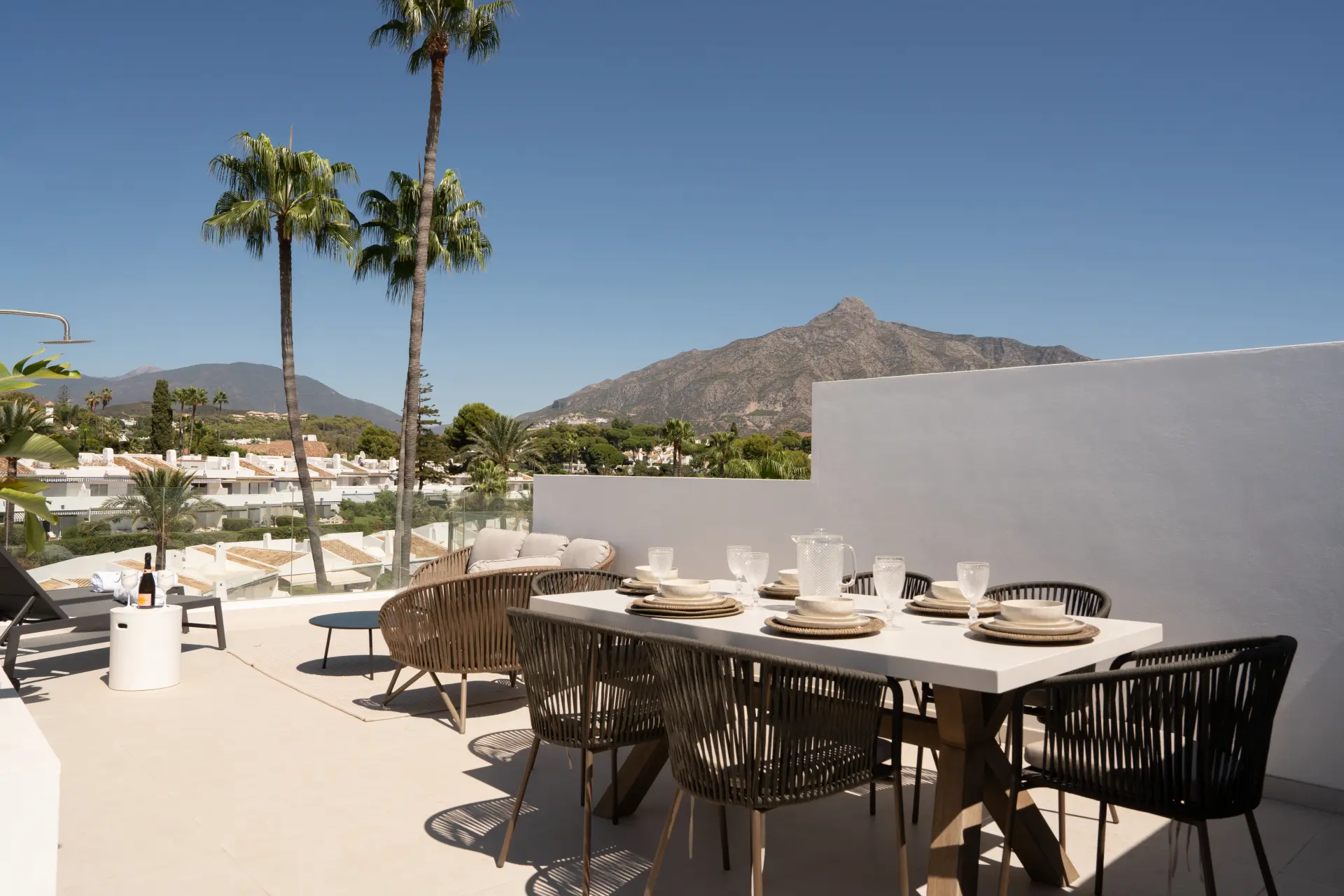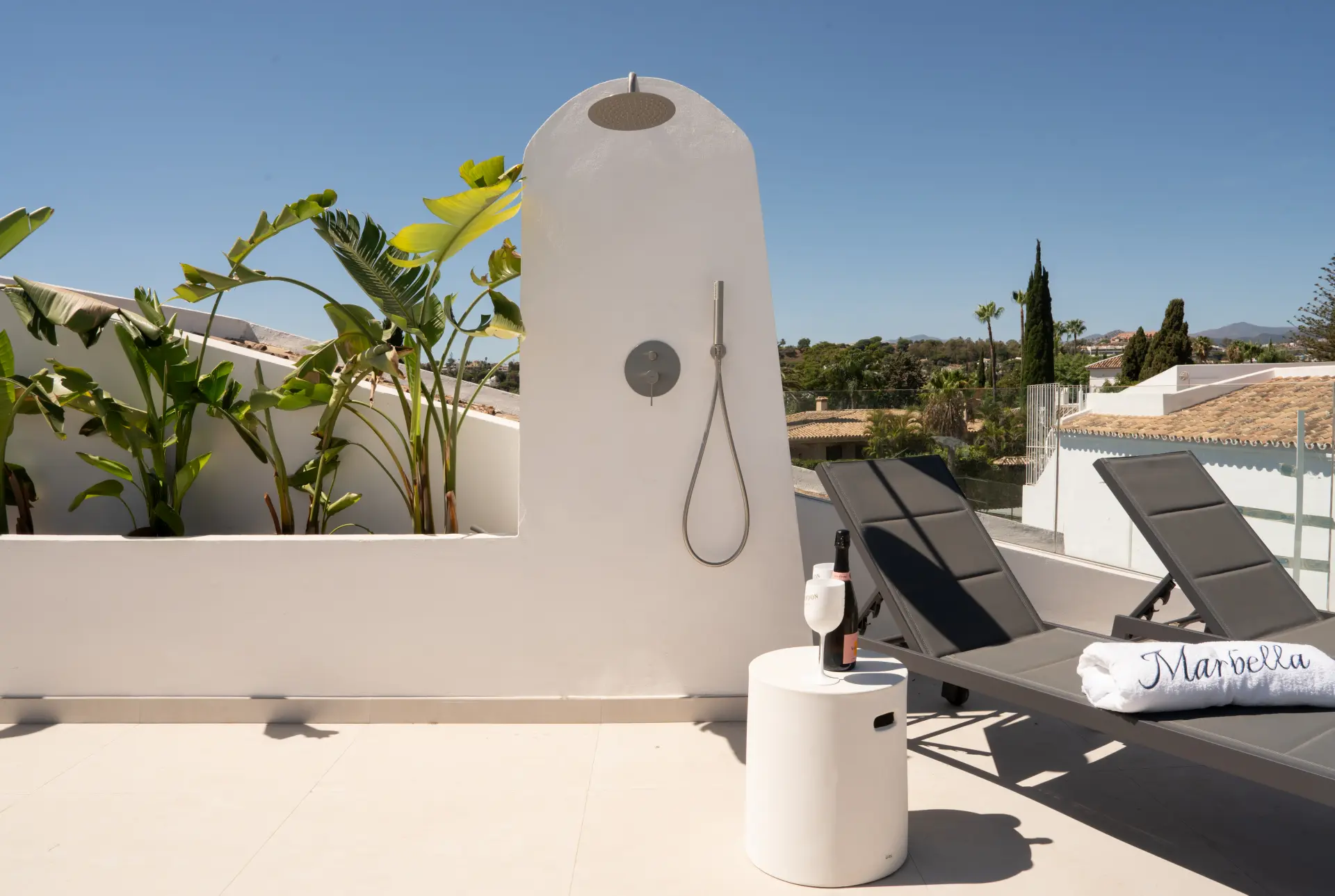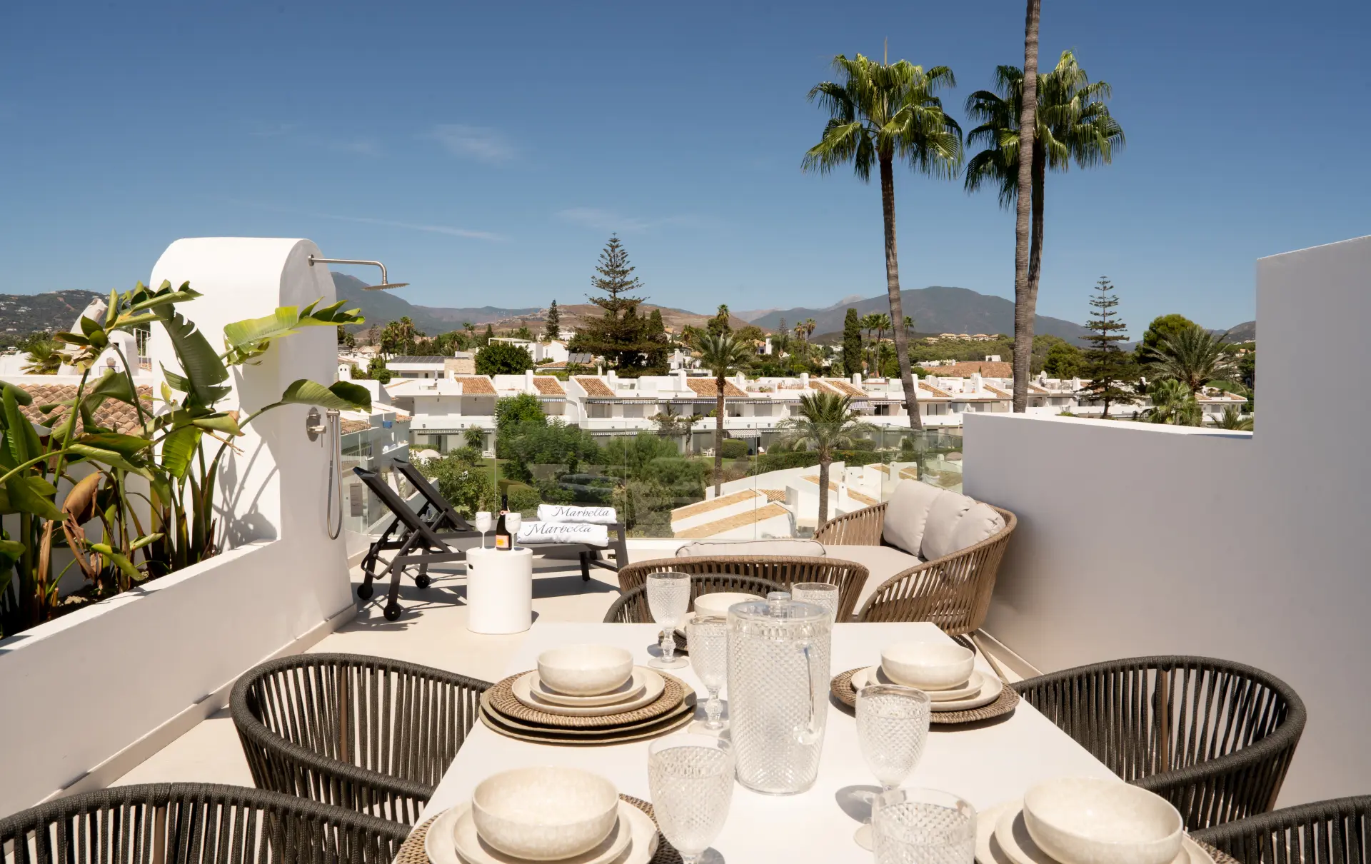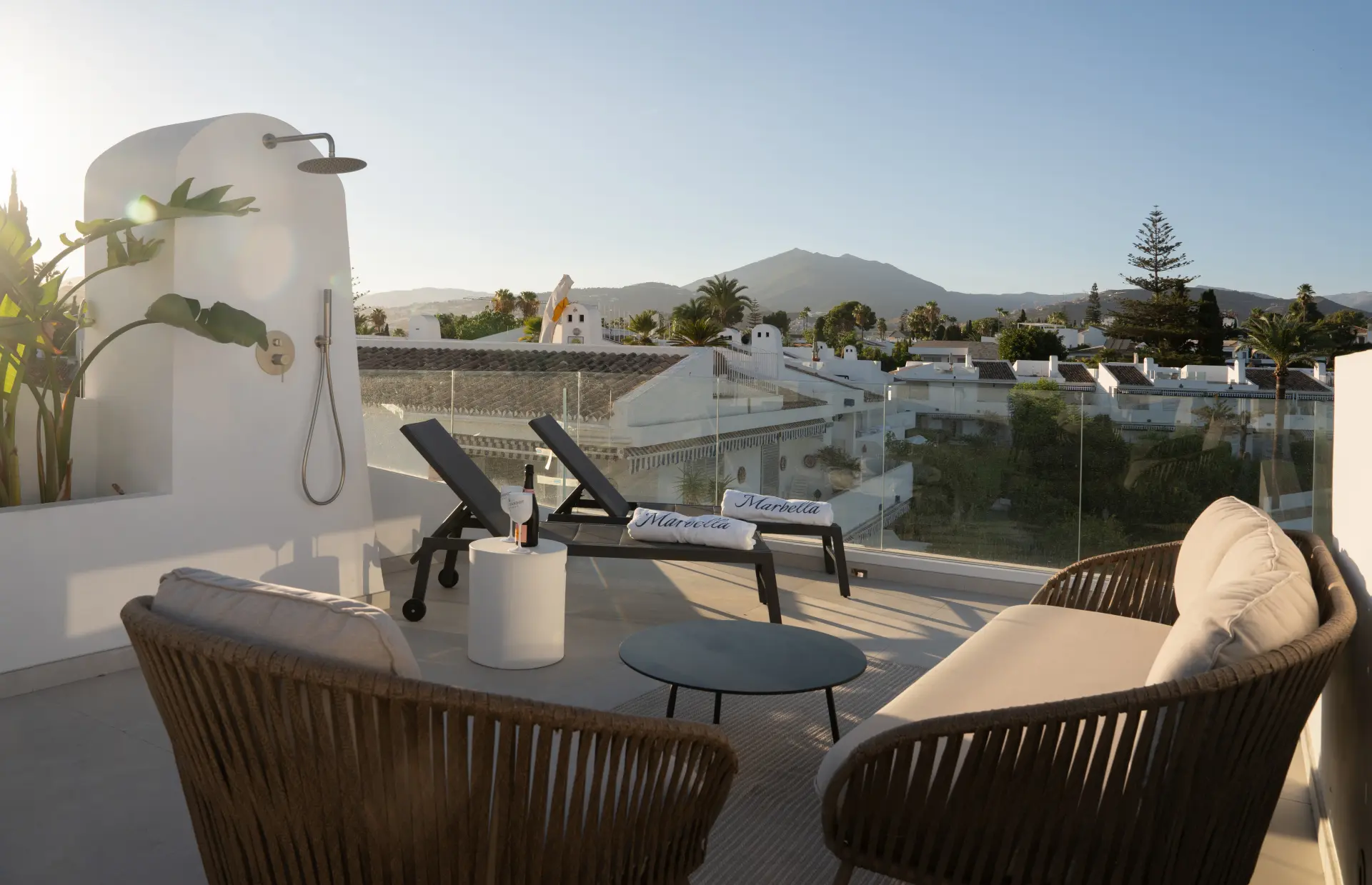 The highlight is the private rooftop solarium, offering 360º views of La Concha mountain and the sea. With an outdoor kitchen, barbecue, dining space, shower, and ample room for sunbathing or evening gatherings, it’s designed for both relaxation and entertaining.