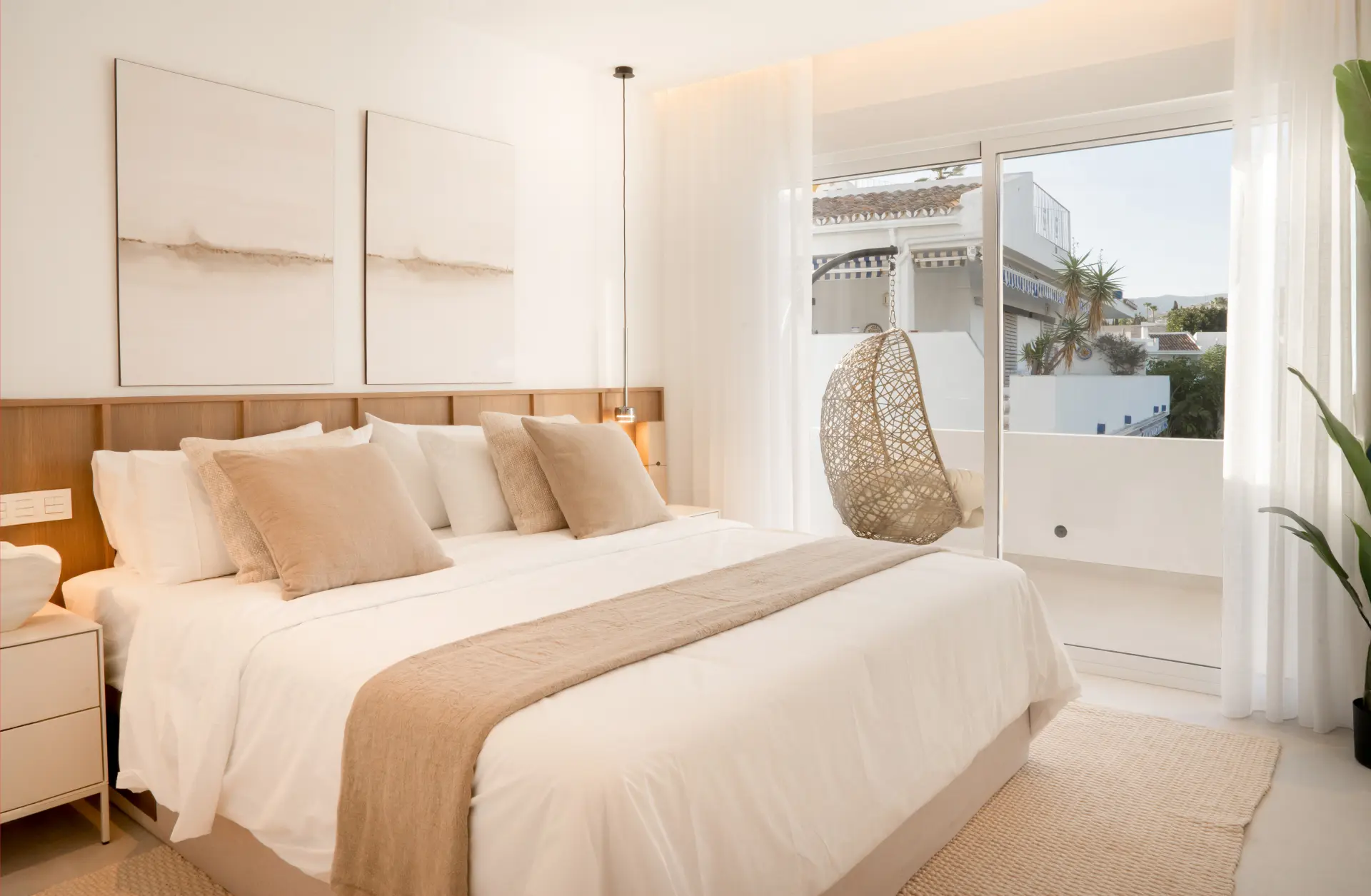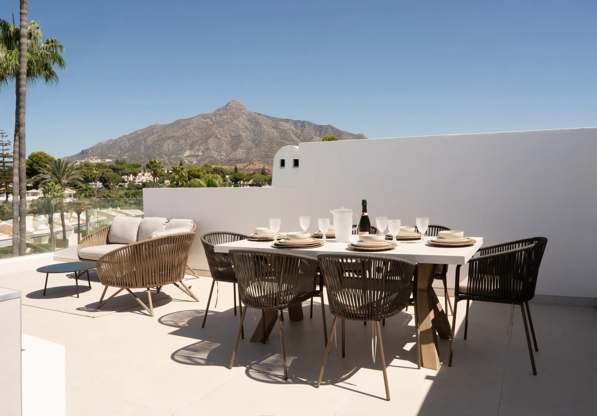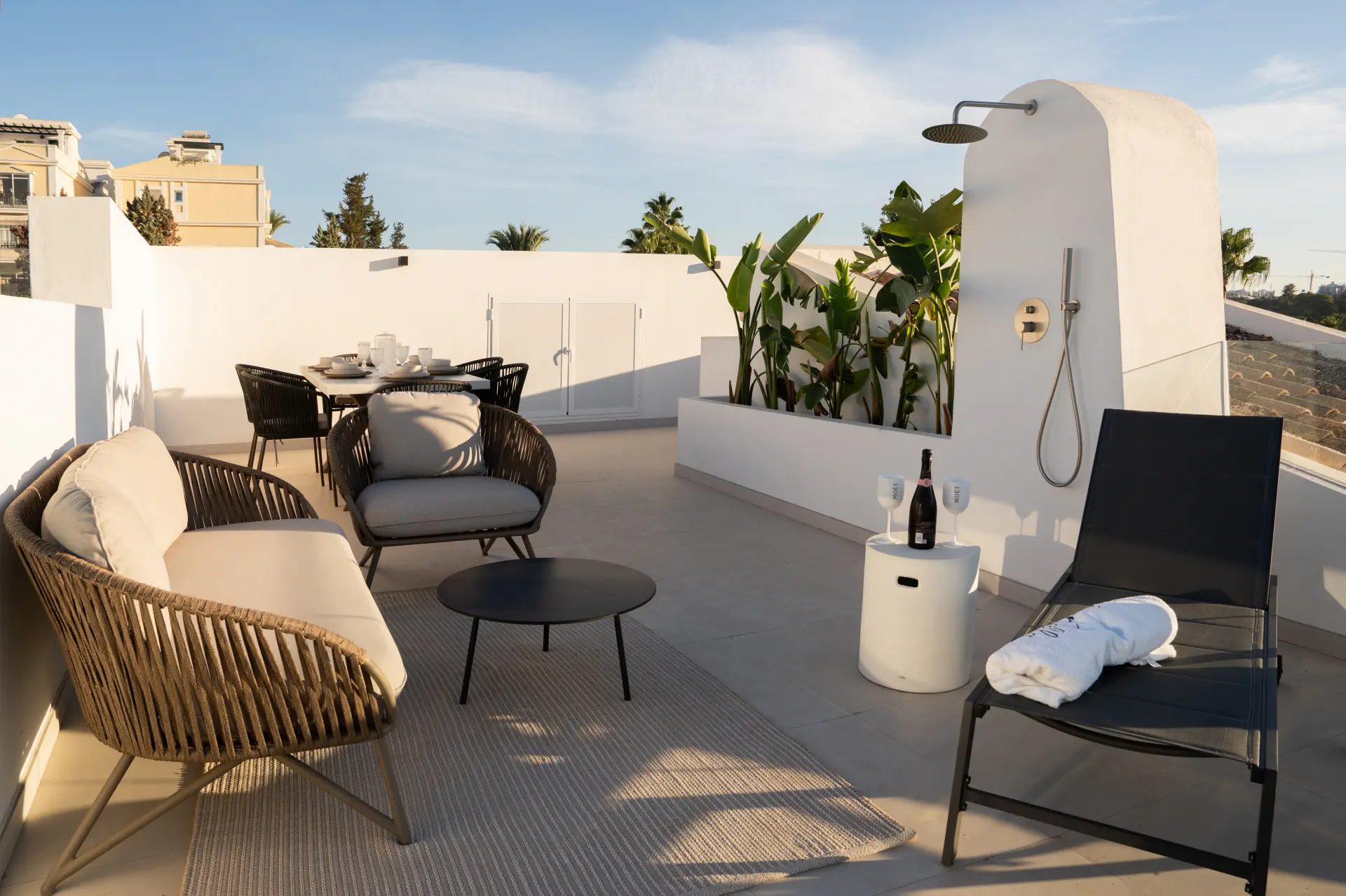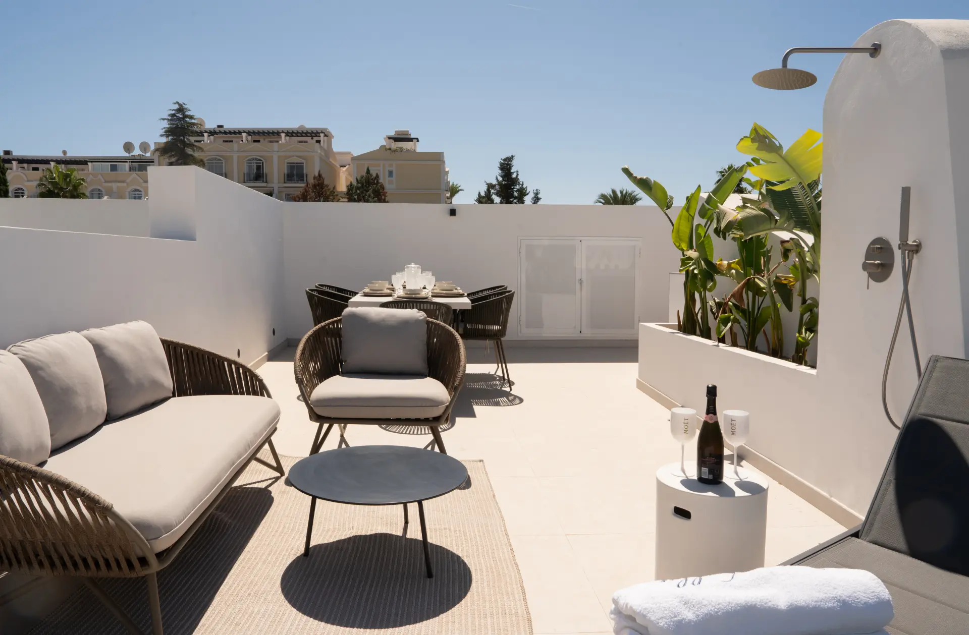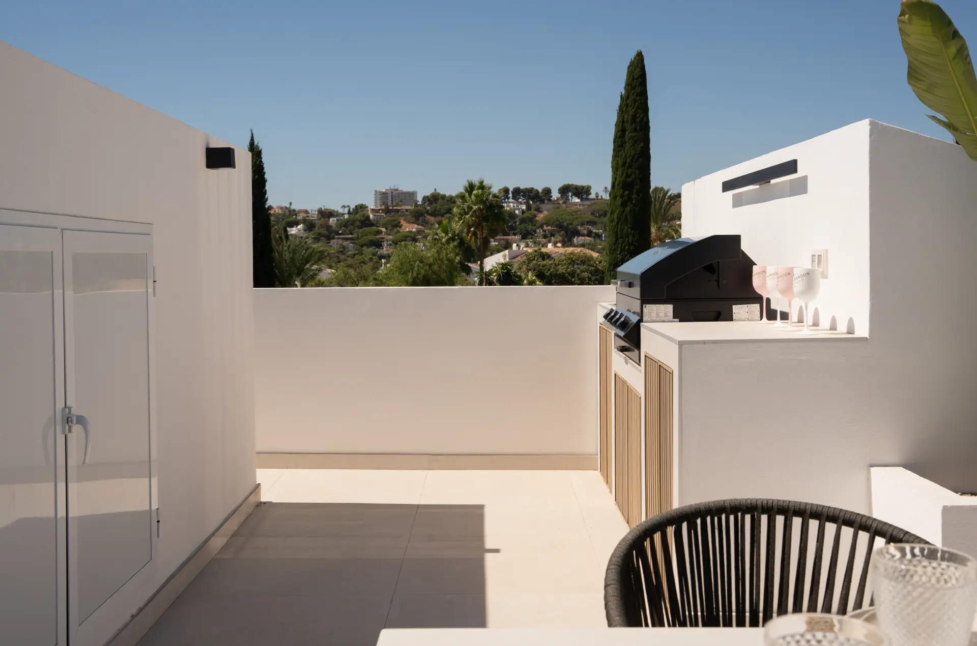 The highlight is the private rooftop solarium, offering 360º views of La Concha mountain and the sea. With an outdoor kitchen, barbecue, dining space, shower, and ample room for sunbathing or evening gatherings, it’s designed for both relaxation and entertaining.