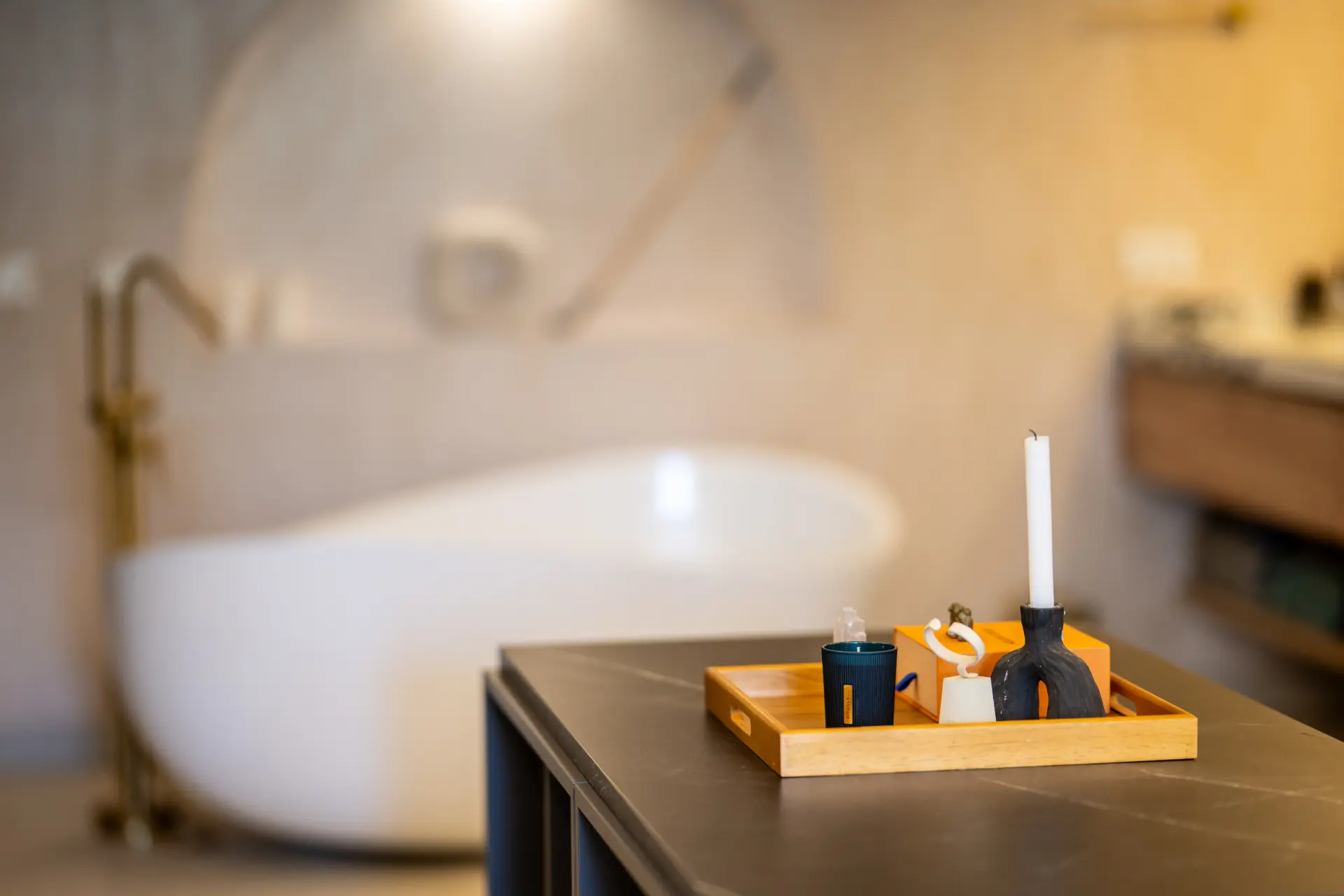 Upstairs, a bedroom suite opens onto a private terrace with panoramic views.