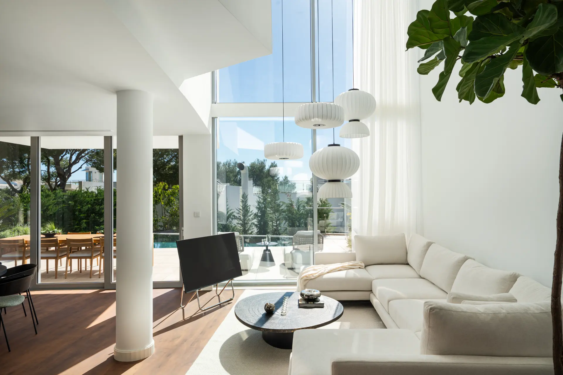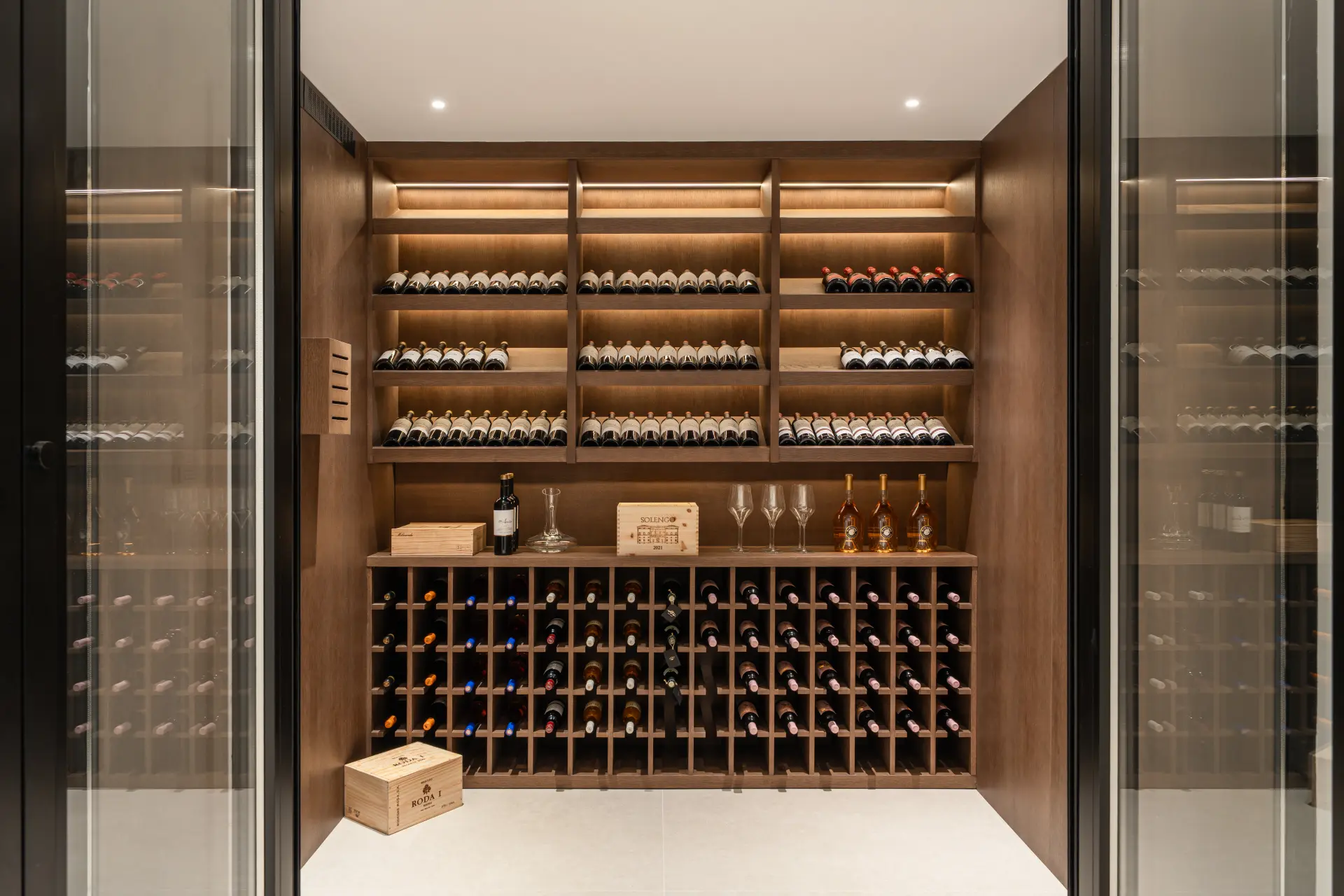 The lower level includes a wine cellar, laundry area and direct access to private parking for up to three vehicles. Recently renovated with a Scandinavian approach, the interiors emphasise natural light, clean lines and practical living, complemented by underfloor heating throughout.
