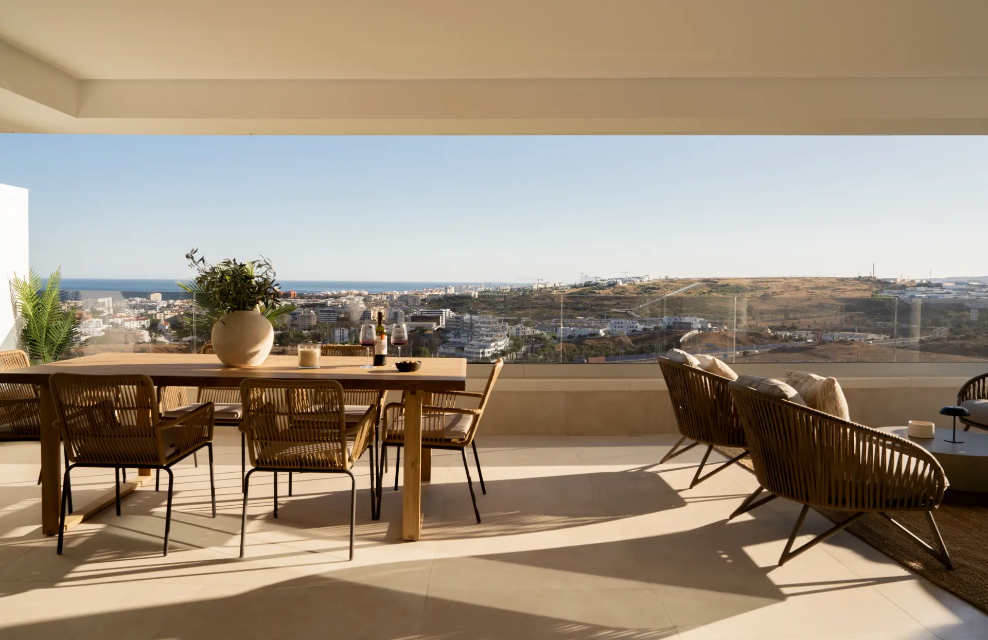 Welcome to this brand-new, never-lived-in apartment in Mirador de Estepona Hills, one of the most prestigious residential communities in the area of Estepona. Thoughtfully designed for comfort and modern living, this spacious home offers 3 bedrooms and 2.5 bathrooms, including a master suite with en-suite bathroom. The open-plan living and dining area is filled with natural light, flowing seamlessly onto a southwest-facing terrace with sweeping views across Estepona town and the Mediterranean Sea.