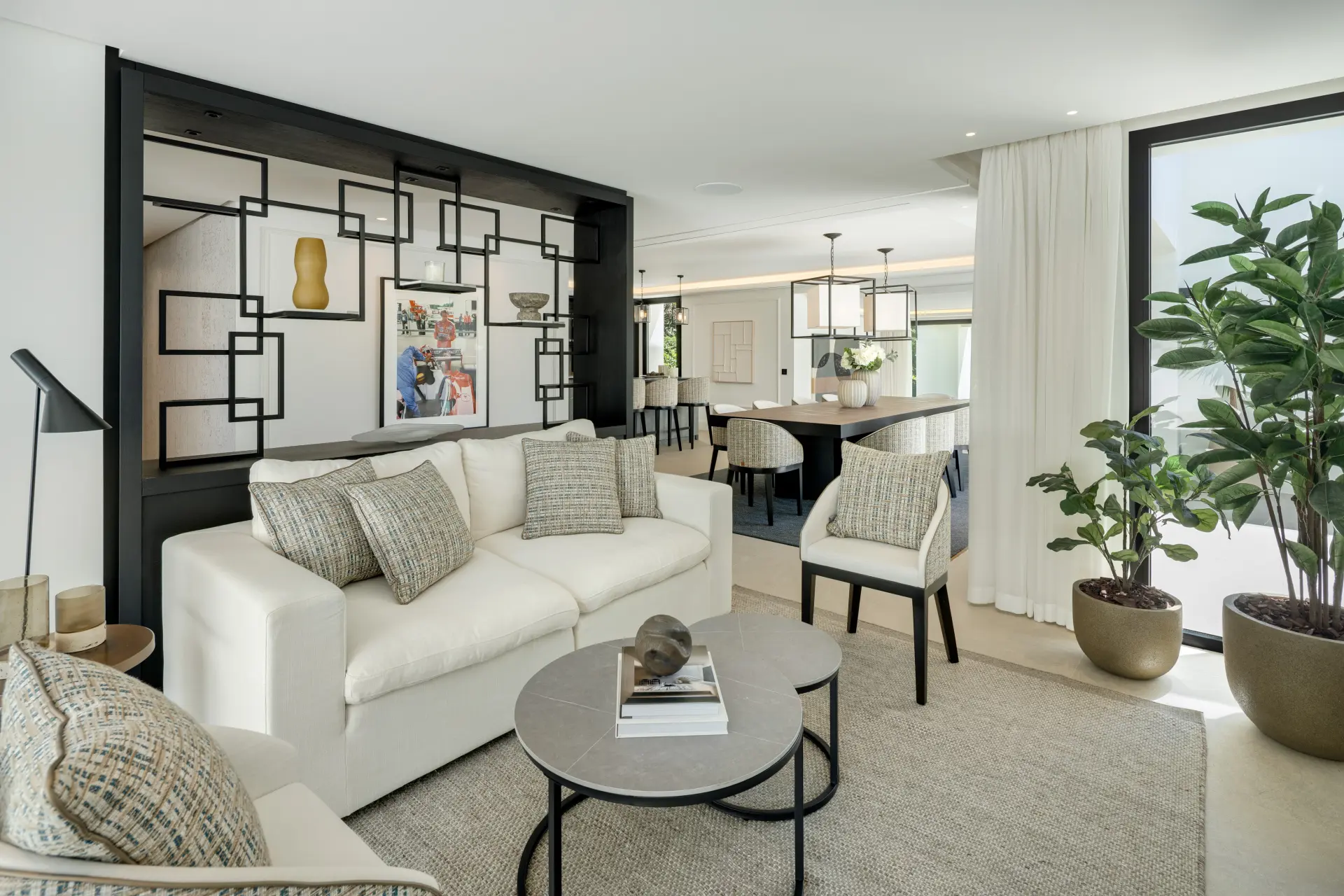 Villa Malibu is an exceptional modern residence in the heart of Nueva Andalucía, one of the Costa del Sol’s most prestigious residential areas. Designed by acclaimed architect Francisco Martinez Galván, the villa blends contemporary Mediterranean style with superior functionality and craftsmanship. Positioned to capture serene sea views and overlooking a custom-designed saltwater pool, it offers the perfect balance of privacy, sophistication, and convenience.