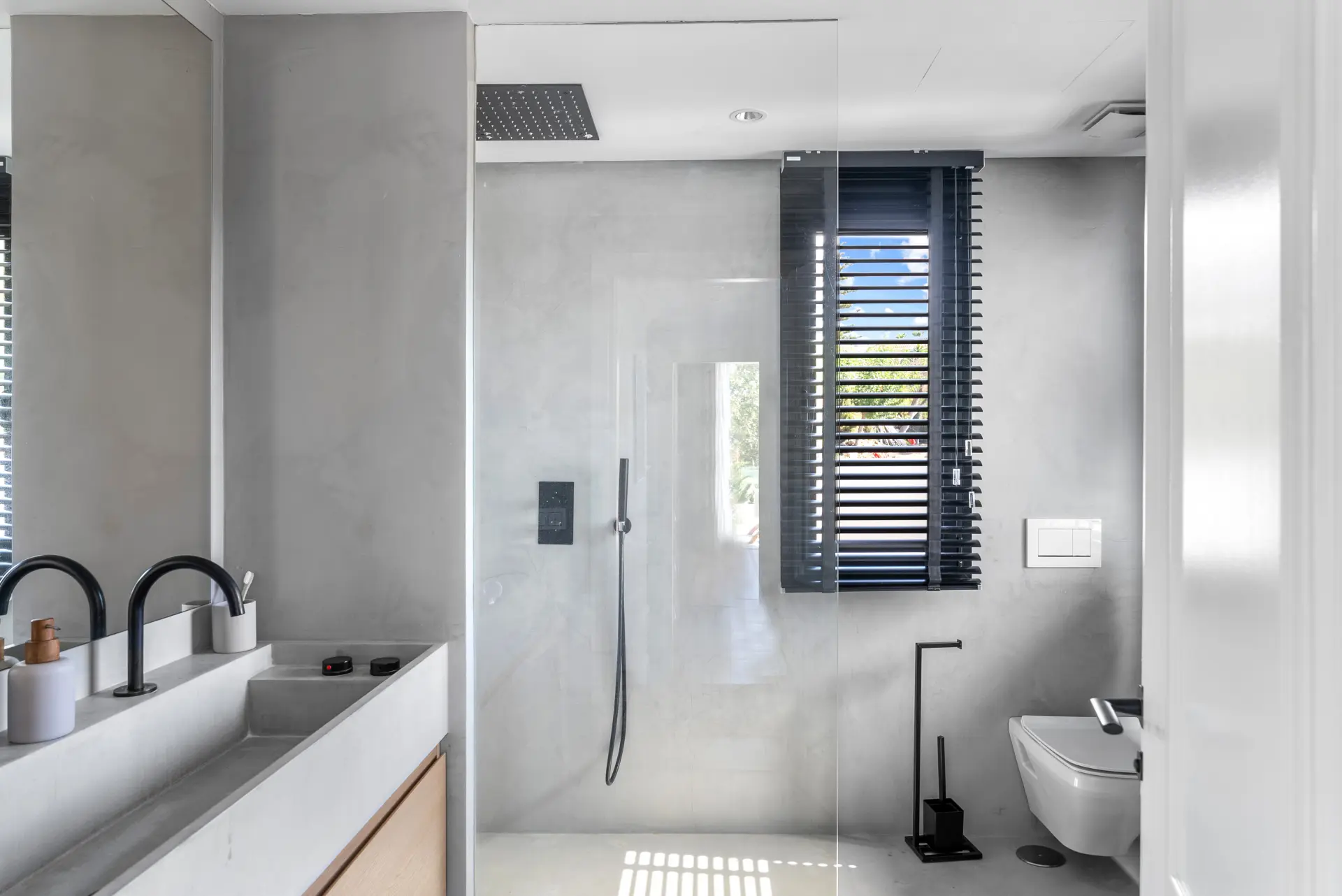 The master suite offers a private terrace with a Jacuzzi, perfect for relaxing under the stars, while three further bedrooms provide ample space for family and guests. Upstairs, the bedrooms enjoy open views over the golf course, enhancing the sense of tranquility and openness.
