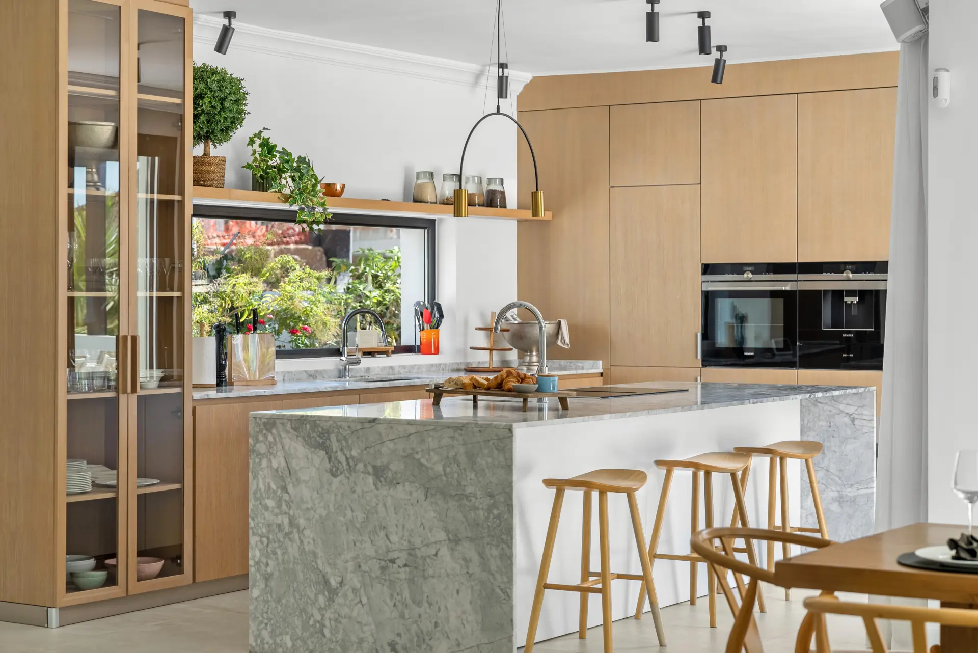 The open-plan kitchen and living area flow seamlessly to a covered terrace with an outdoor kitchen and pergola — ideal for alfresco dining and entertaining. On the entry level, two additional rooms provide flexible space, perfect for a children’s playroom, office, or guest suite.